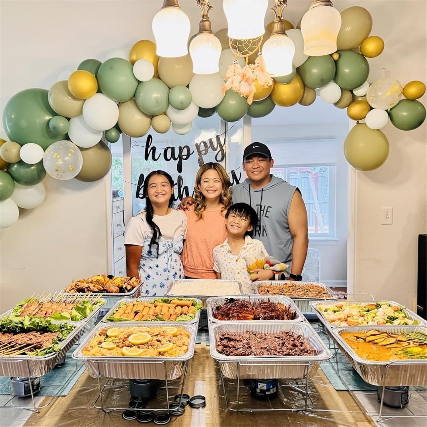 • 💚 Sage Green Balloons Set: This is a beautiful bright balloon, which contains balloons of different colors. Include 12 inch sage green balloon(20pcs), olive green balloon(15pcs), macaron green balloon(10pcs), metallic gold balloon(10pcs), gold confetti balloon(5pcs), 2 rolls of ribbons. You can use these different shades of green balloon kits, DIY balloon combinations to create your birthday party.
