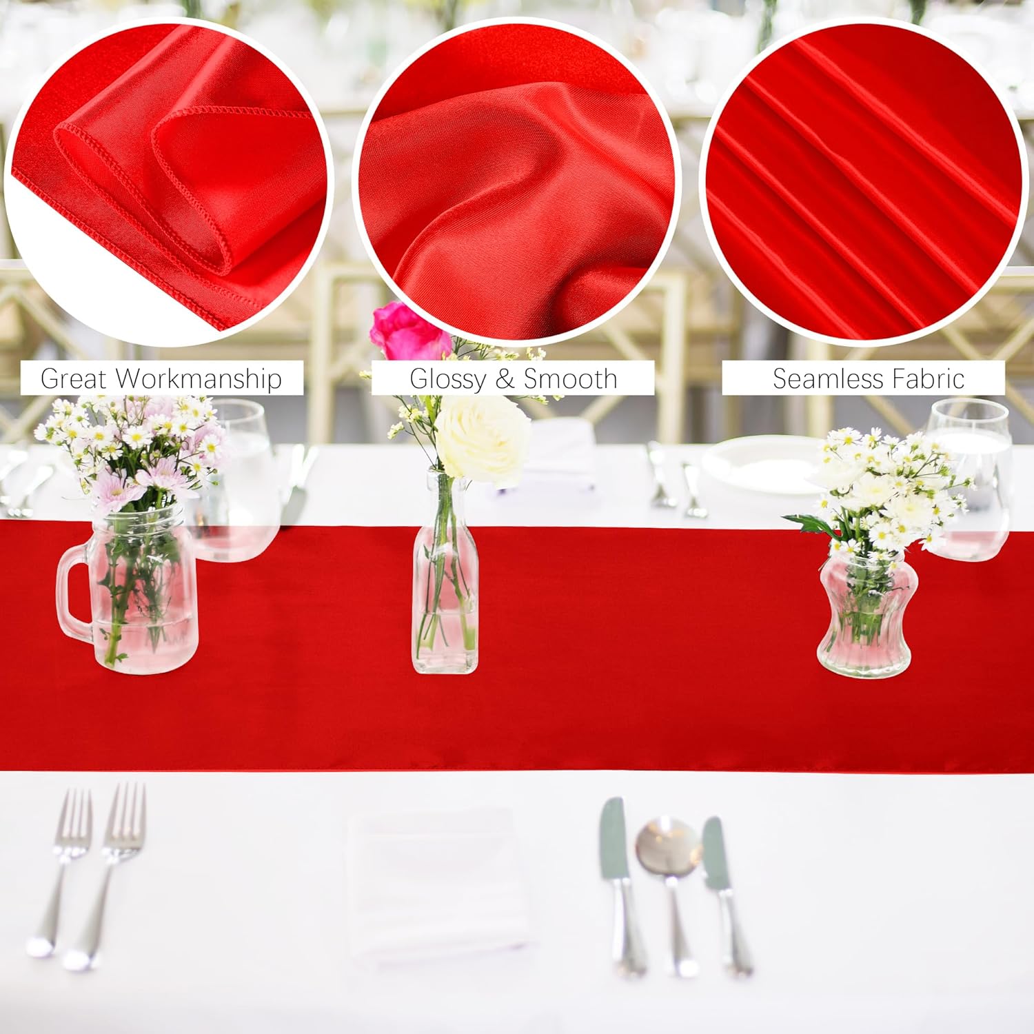 Aneco 16 Pack Satin Table Runner 12 X 108 Inch Red Long Wedding Satin Silk Table Runner for Wedding Banquet Graduations Birthday Party Decoration