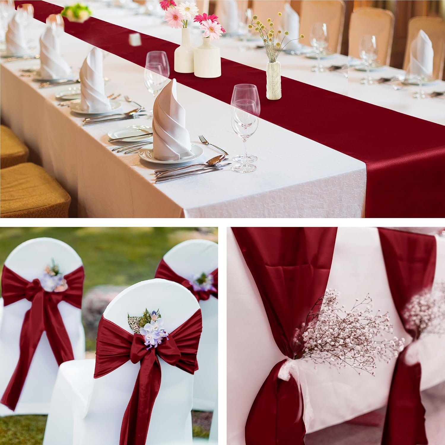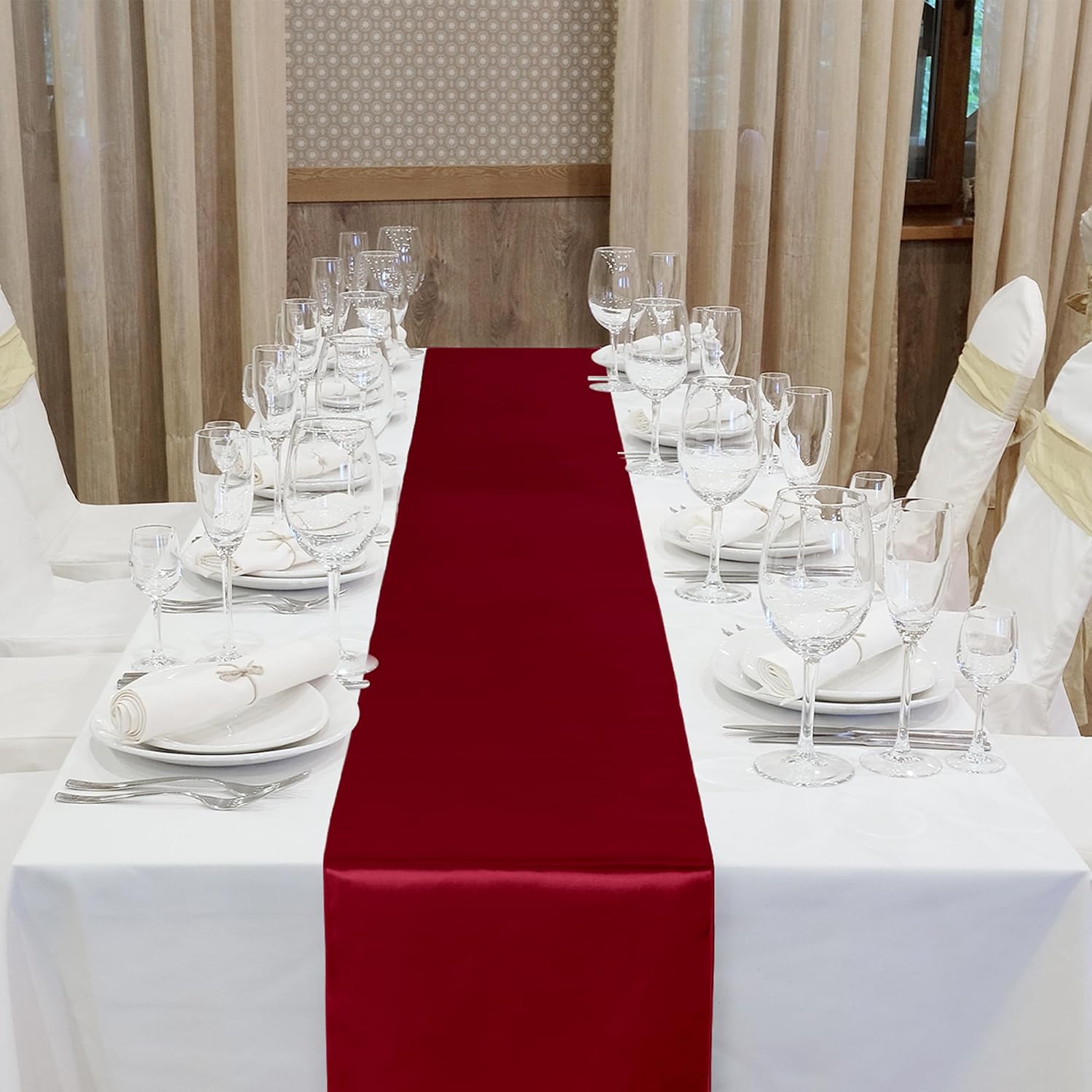 Aneco 16 Pack Satin Table Runner 12 x 108 Inch Burgundy Long Wedding Satin Silk Table Runner for Wedding Banquet Graduations Birthday Party Decoration