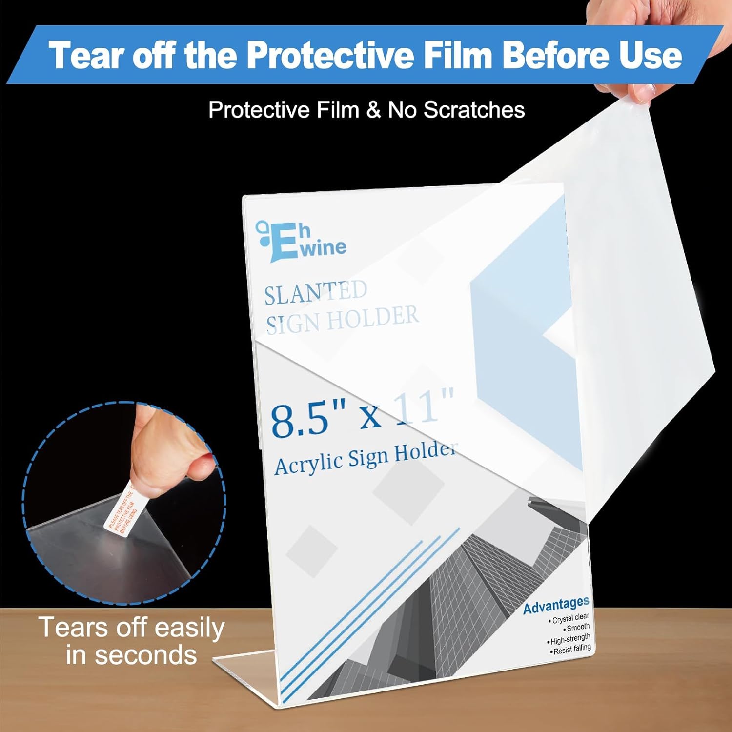 • Clear Picture Frame: EHWINE acrylic sign holders are very clear and transparent, and the L-shape design provides a professional look for your display. With no distortion or cloudiness, and your message will be conveyed with crystal clarity
