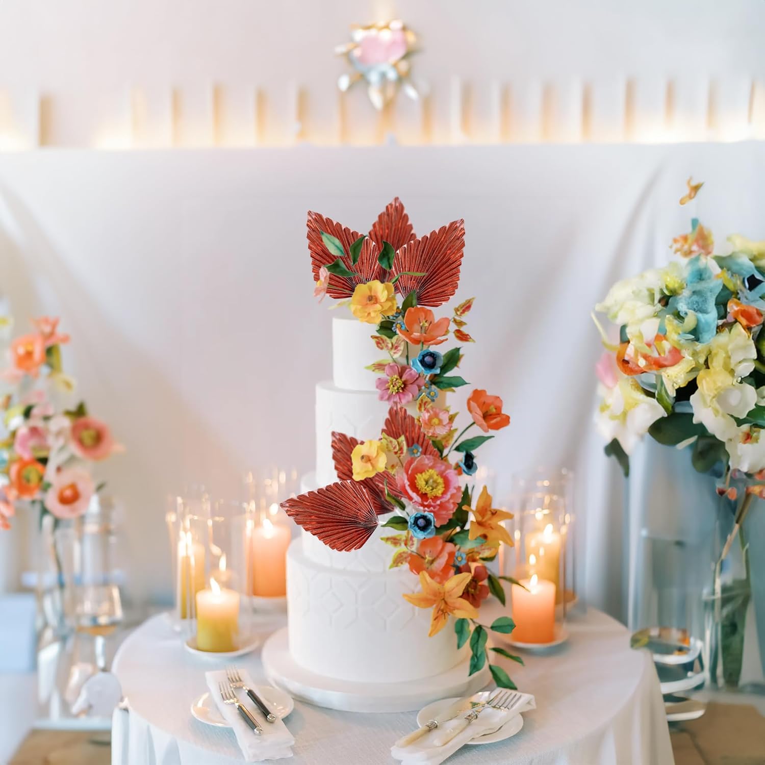 • -Premium Material: These Paper Palm Fan Cake Toppers are made of high quality paper material and food-grade toothpick, very safe to put them on cakes, cupcakes, ice cream, fruits, pie, dessert, cheese or any dish and food appetizer you want to decorate Wedding theme Party decorations.