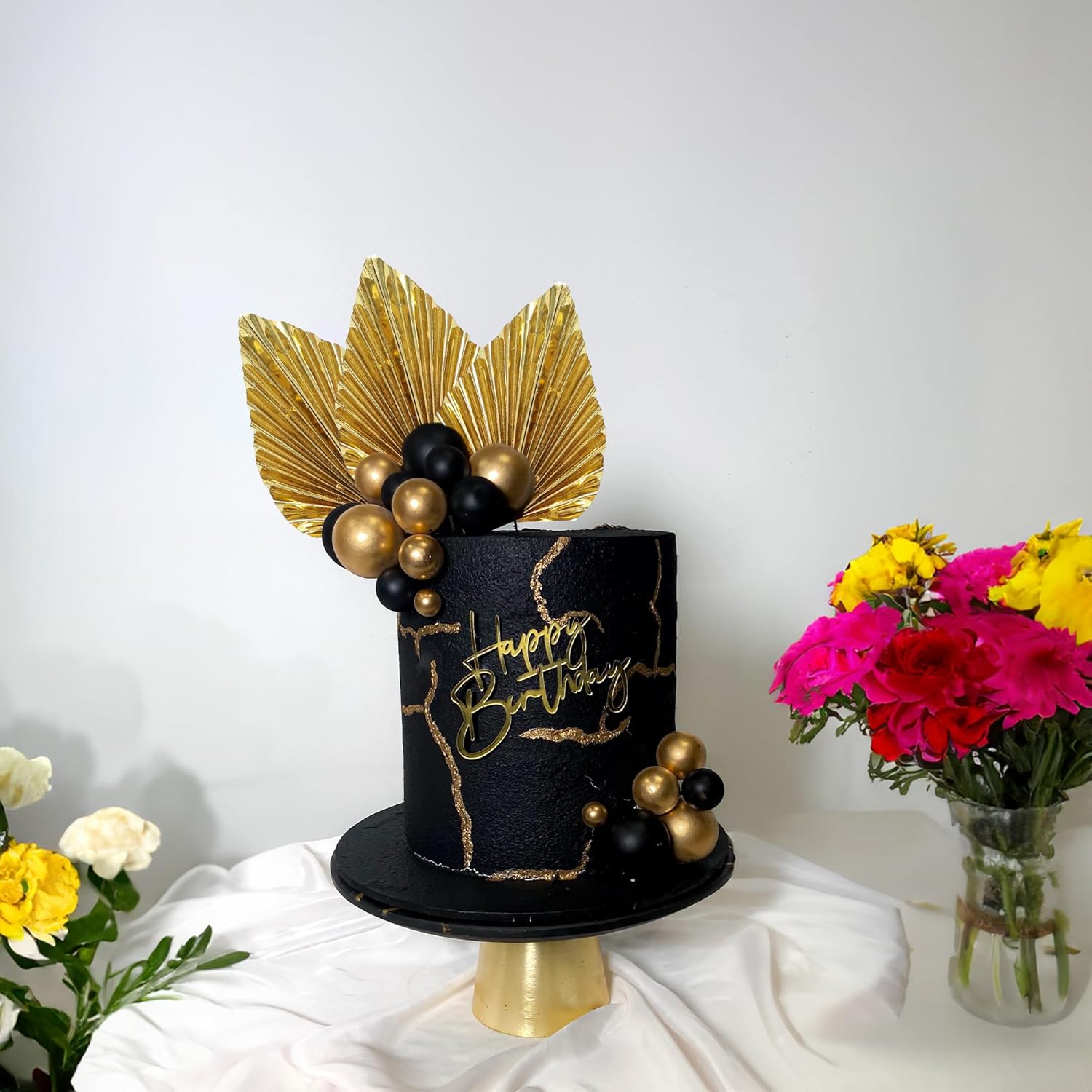 Gyufise 6Pcs Paper Palm Fan Cake Toppers Palm Spear Leaves Fan Cupcake Toppers Cake Insert Decorations Craft DIY Cake Bakeware Decoration for Birthday Party Wedding Party Decor Supplies Light Gold