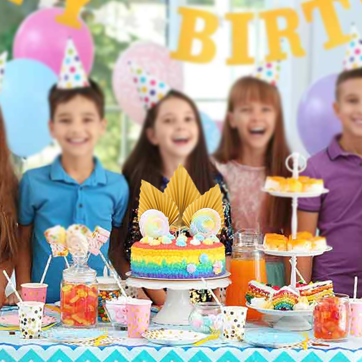 Gyufise 6Pcs Paper Palm Fan Cake Toppers Palm Leaf Fan Cake Topper Palm Spear Leaf Cupcake Toppers Cake Insert Decoration For Cake Decorating Diy Craft Project Home Wedding Party Supplies Gold