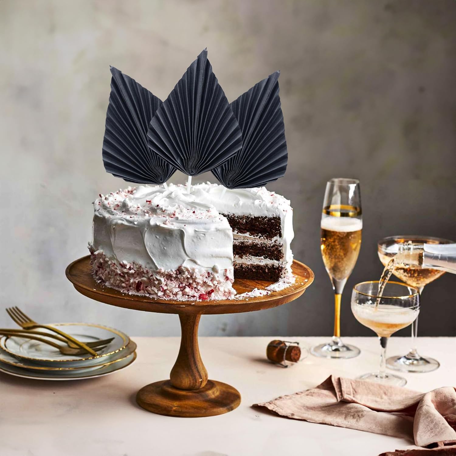 Gyufise 6Pcs Paper Palm Fan Cake Toppers Palm Spear Leaves Fan Cupcake Toppers Cake Insert Decorations Craft DIY Cake Bakeware Decoration for Birthday Party Wedding Party Decor Supplies Black
