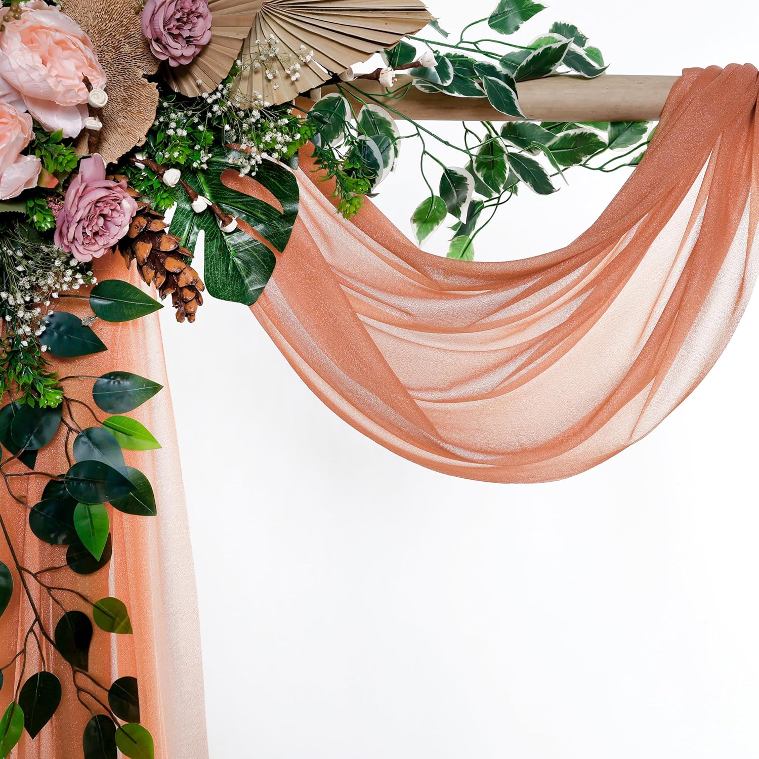 VDS Pack of 1 Panel (30 Inch X 40 Feet) Wedding Arch Draping Fabric Sheer Chiffon Fabric Drapery for Wedding Ceremony Reception Swag Backdrop Canopy Chuppah ARBO Altars Decoration (Coral Peach)