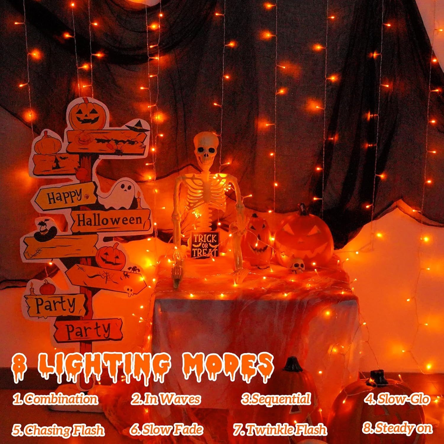 • Orange Lights for Halloween Decorations: Super surprise and terrifying orange that you can't wait to decorate with them for the holidays. Light up the night with our Halloween orange string lights for a mysterious and scary Halloween atmosphere.