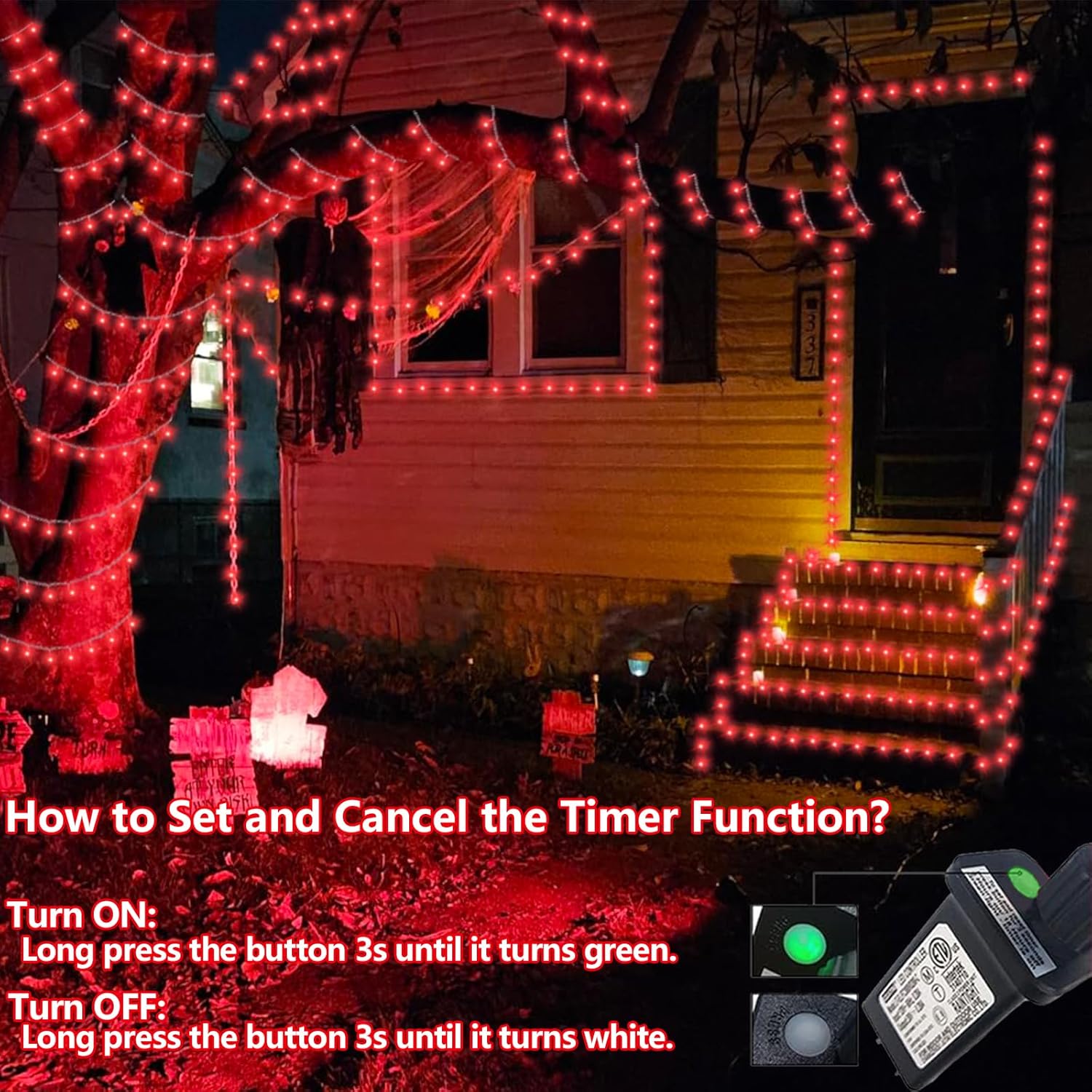 • Red Lights for Halloween Decorations: Super surprise and terrifying red that you can't wait to decorate with them for the holidays. Light up the night with our Halloween red string lights for a mysterious and scary Halloween atmosphere.