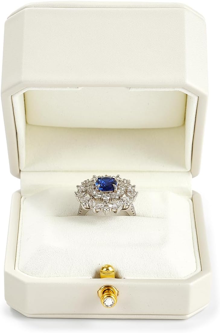 Oirlv Luxury Leather Ring Box for Jewelry Gift Octagon Women Ring Holder for Wedding Day, Proposal, Engagement, Anniversary(White,Single)