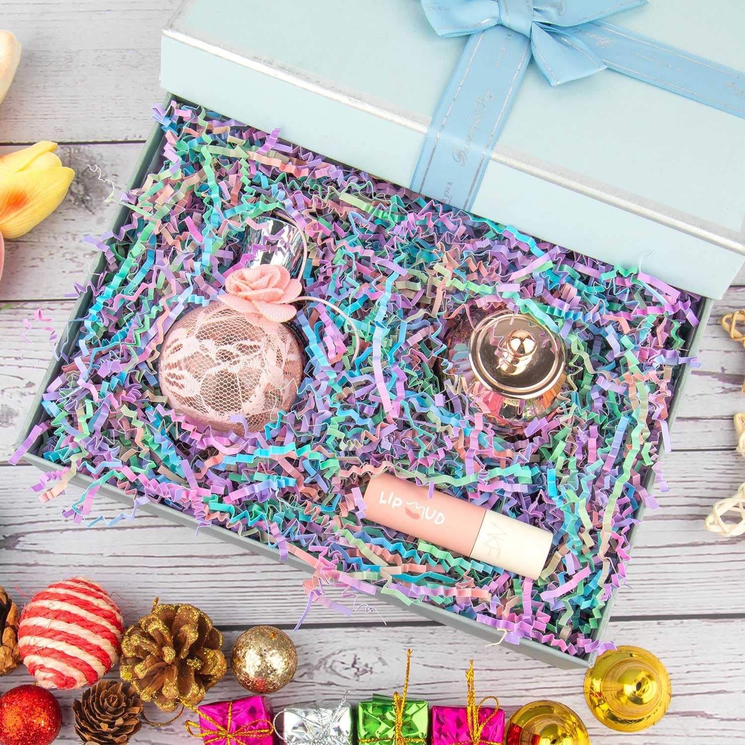 • Shredded Paper for Gift Baskets: The packing paper add distinctive, texture and style to your gift, and can be selected to match any theme or color scheme, showcase your product or gift items better.