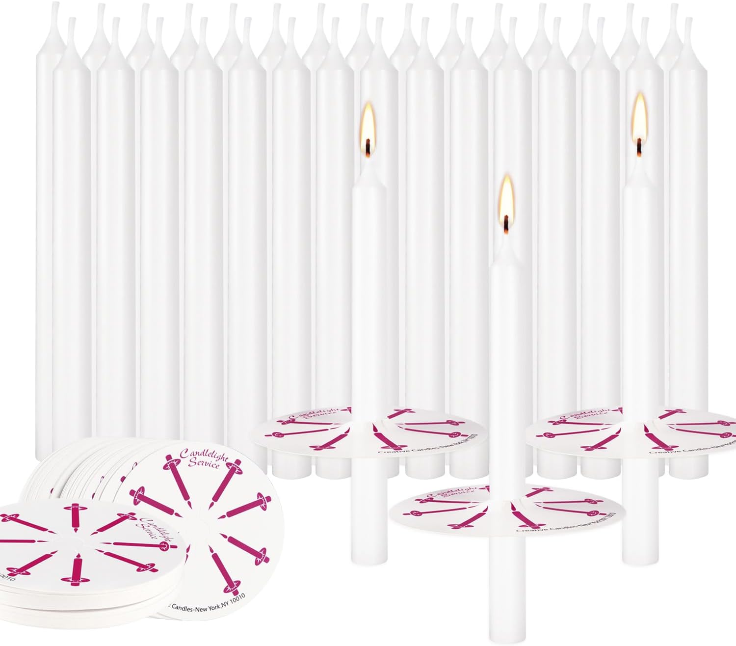 400 Pack White Taper Candles with Drip Guards & Paper Holders - 5 Inch Odorless Religious Candles for Church Prayers, Sabbath Ceremonies, & Home Decorations…