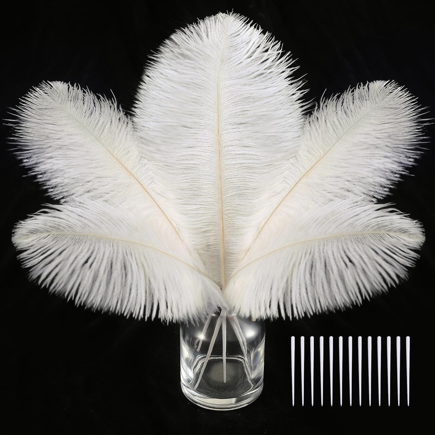 • Creative Ostrich Feathers Set: 30 pcs off white ostrich feathers bulk 8-10 inches, 30 pcs small white sticks 3 inches long. Ostrich feathers kit total length can be up to 10-12 inches