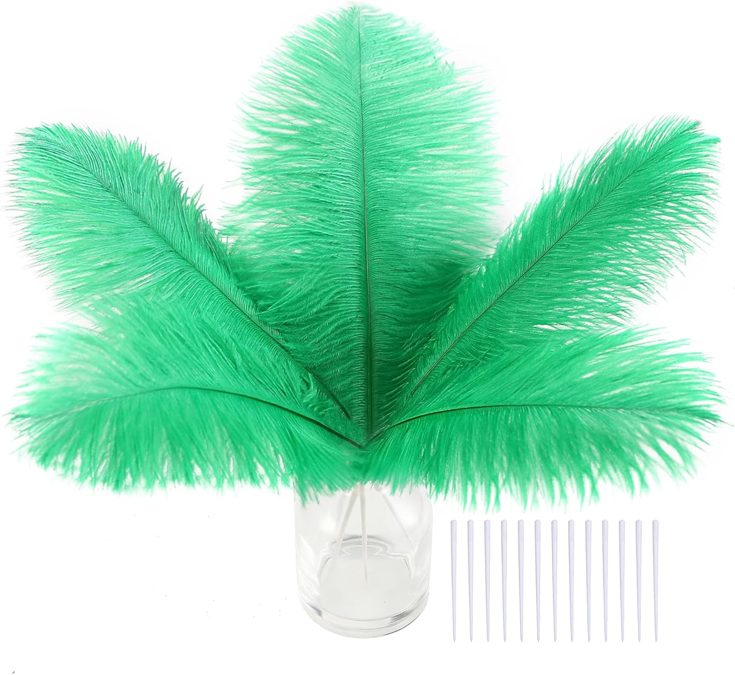 • Creative Ostrich Feathers Set: 30 pcs green ostrich feathers bulk 8-10 inches, 30 pcs small white sticks 3 inches long. Ostrich feathers kit total length can be up to 10-12 inches