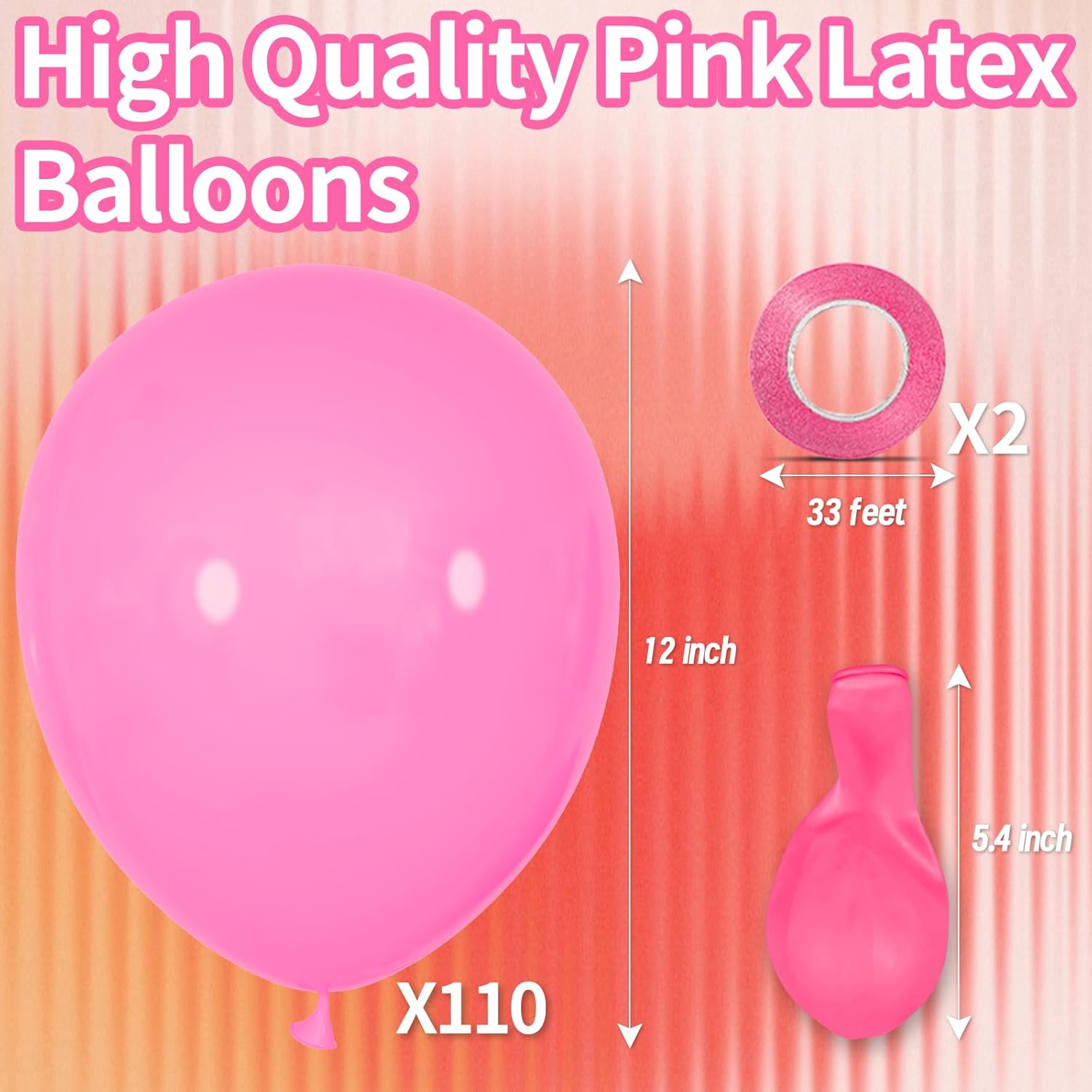 KAWKALSH Pink Balloon 12 Inch, 110pcs Latex Party Balloons Helium Bright Color for Birthday Baby Shower Wedding Party Supplies Arch Garland Decoration
