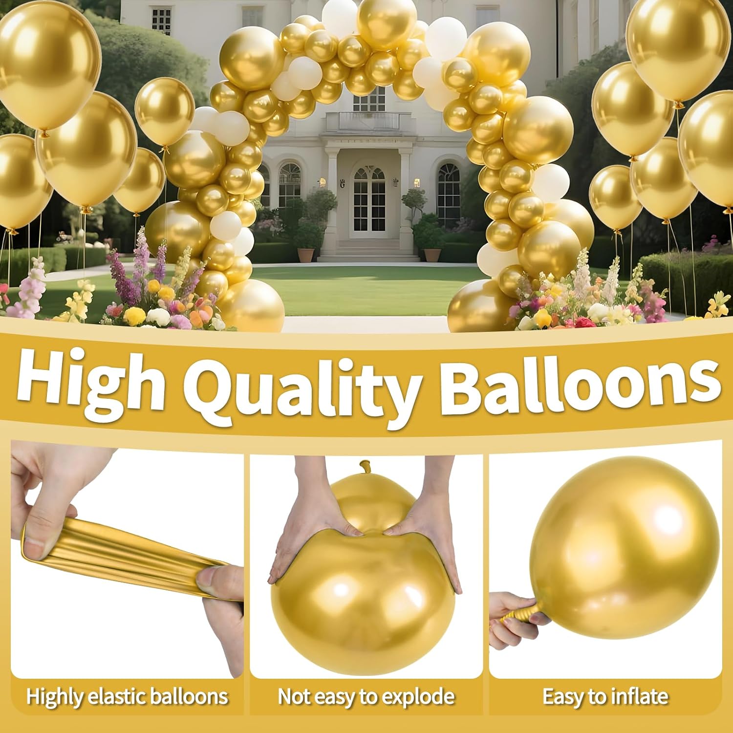 KAWKALSH Metallic Gold Balloon 12 Inch, 110pcs Latex Party Balloons Helium Bright Color for Birthday Baby Shower Wedding Party Supplies Arch Garland Decoration