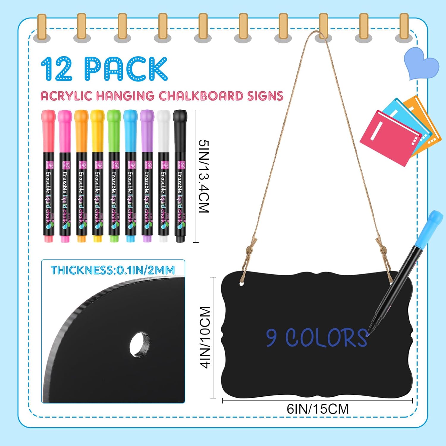 • Included Components : 12 x Acrylic chalkboard hanging sign, 9 x Chalk markers