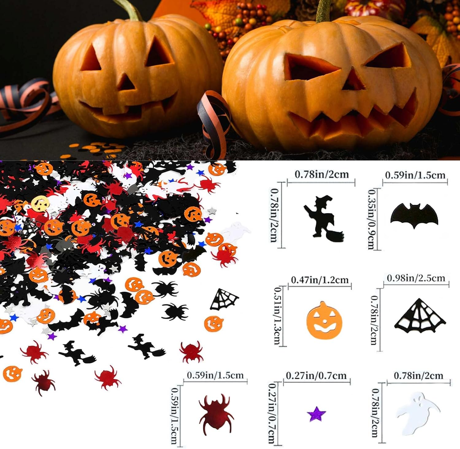 • Halloween Confetti Decorations: This Halloween confetti comes in 7 colors: black, orange, white, silver, red, blue, purple. Includes: pumpkin confetti, star confetti, ghost confetti, cat confetti, spider confetti, bat confetti. spider webs decorations.It's suitable for your Halloween party table decor, cute Halloween themed designs,full of festival atmosphere
