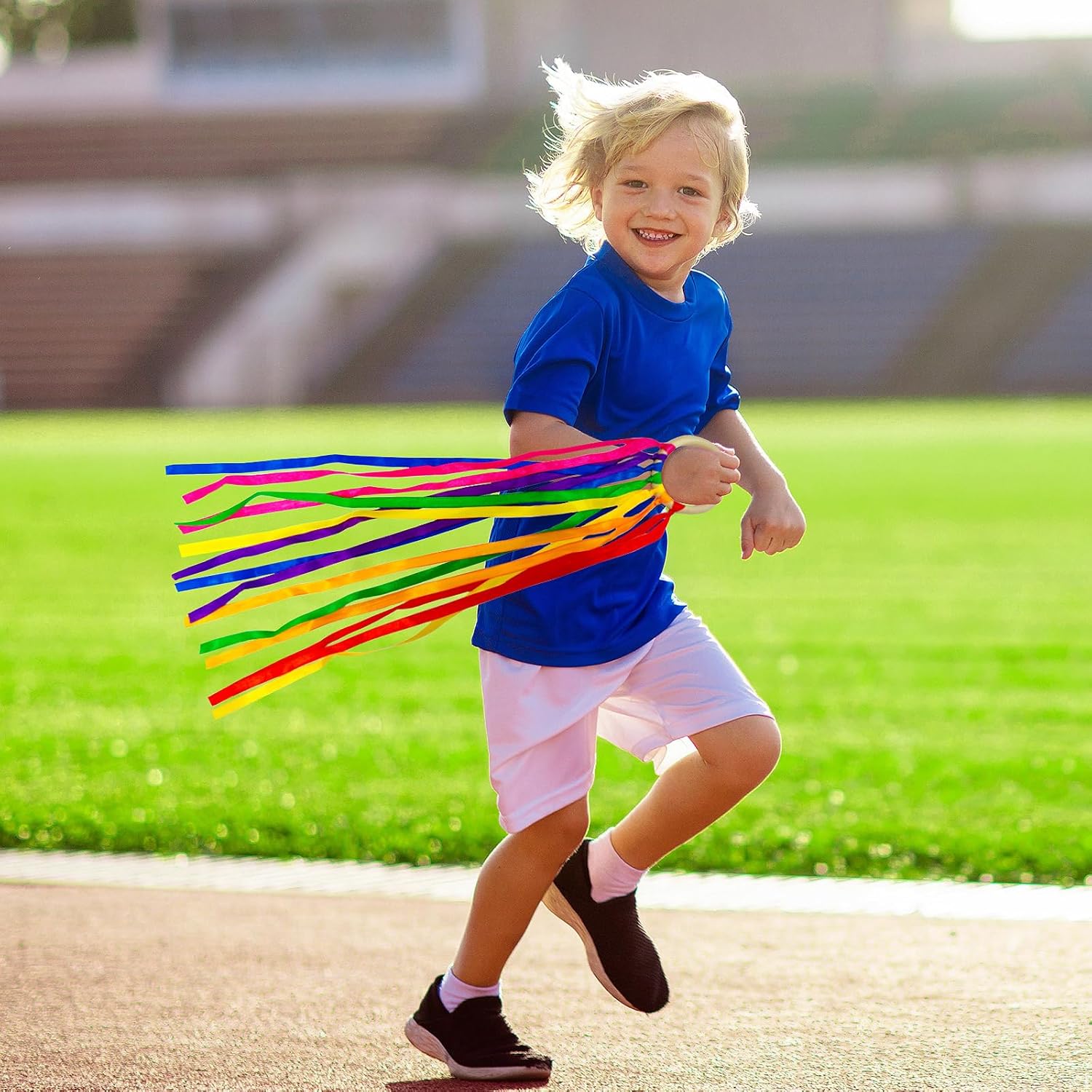 • Rainbow hand kites set: you will get 24 pcs dancing streamers with wooden, vivid and attractive, will easy to attract others attention. Looks like rainbow in the air while twirling, will be loved by most boys and girls.