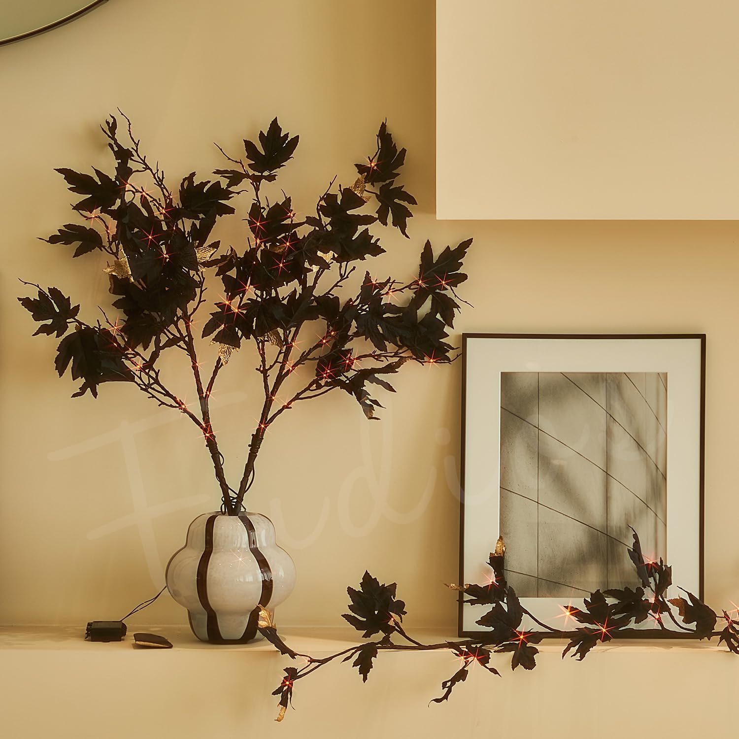 • 🎃 HALLOWEEN DECOR : NEW designed lighted Halloween branches with black and gold maple leaves.32IN tall(Vase not included)