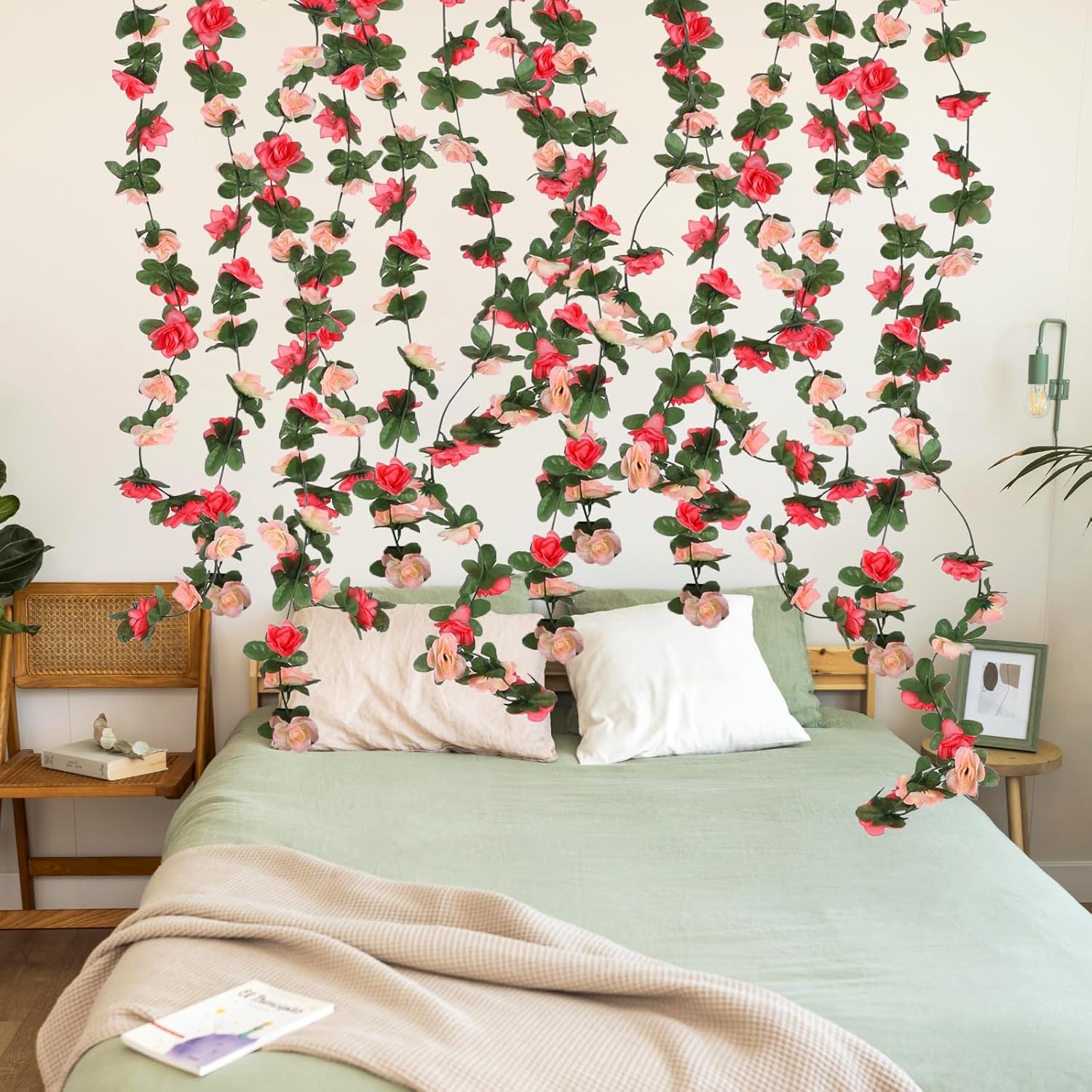 • PACKAGING: Total length 82FT, each vine 8.2FT (250CM), 10 vine plants hanging fake flower garland. Each plant has 45 flowers. Rose heads are 1.6” (4CM) in diameter. 45 leaves. These 10 rose vines are fluffy enough to decorate your room!
