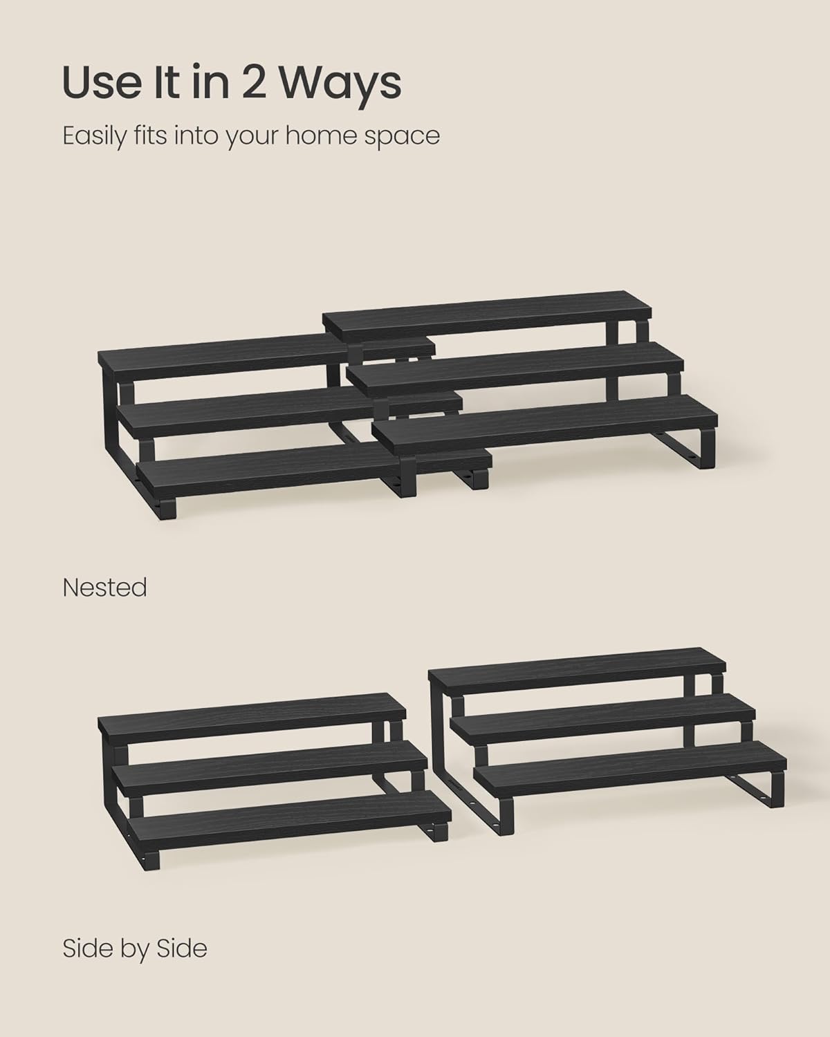 SONGMICS Display Risers, Set of 2 Engineered Wood Perfume Organizer Stand, 3-Tier Cupcake Stand Holder, Spice Rack, Shelf Risers for Figures, Dessert Shelves, Ebony Black and Ink Black UKCS116B01