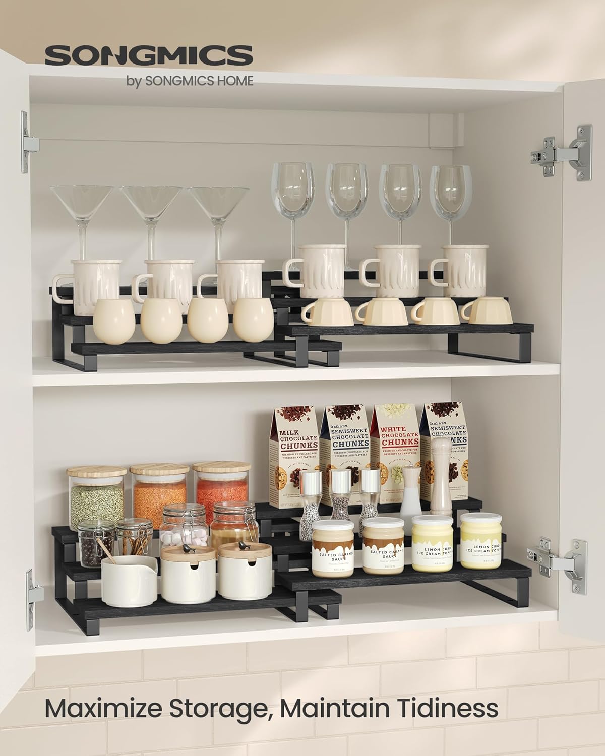 • 【FIND AT A GLANCE】With its specially designed tiered structure and each tier being 3" deep, this display riser ensures all your spice jars and items are clearly visible and easily accessible, preventing messes and keeping your kitchen organized
