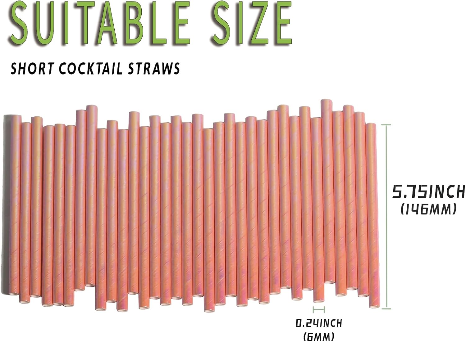 • Cocktail Straws: Paper straws are 5.75"(146mm) in length and 0.24"(6mm) in diameter,suitable for short cup beverages such as coffee, cocktails, milk.