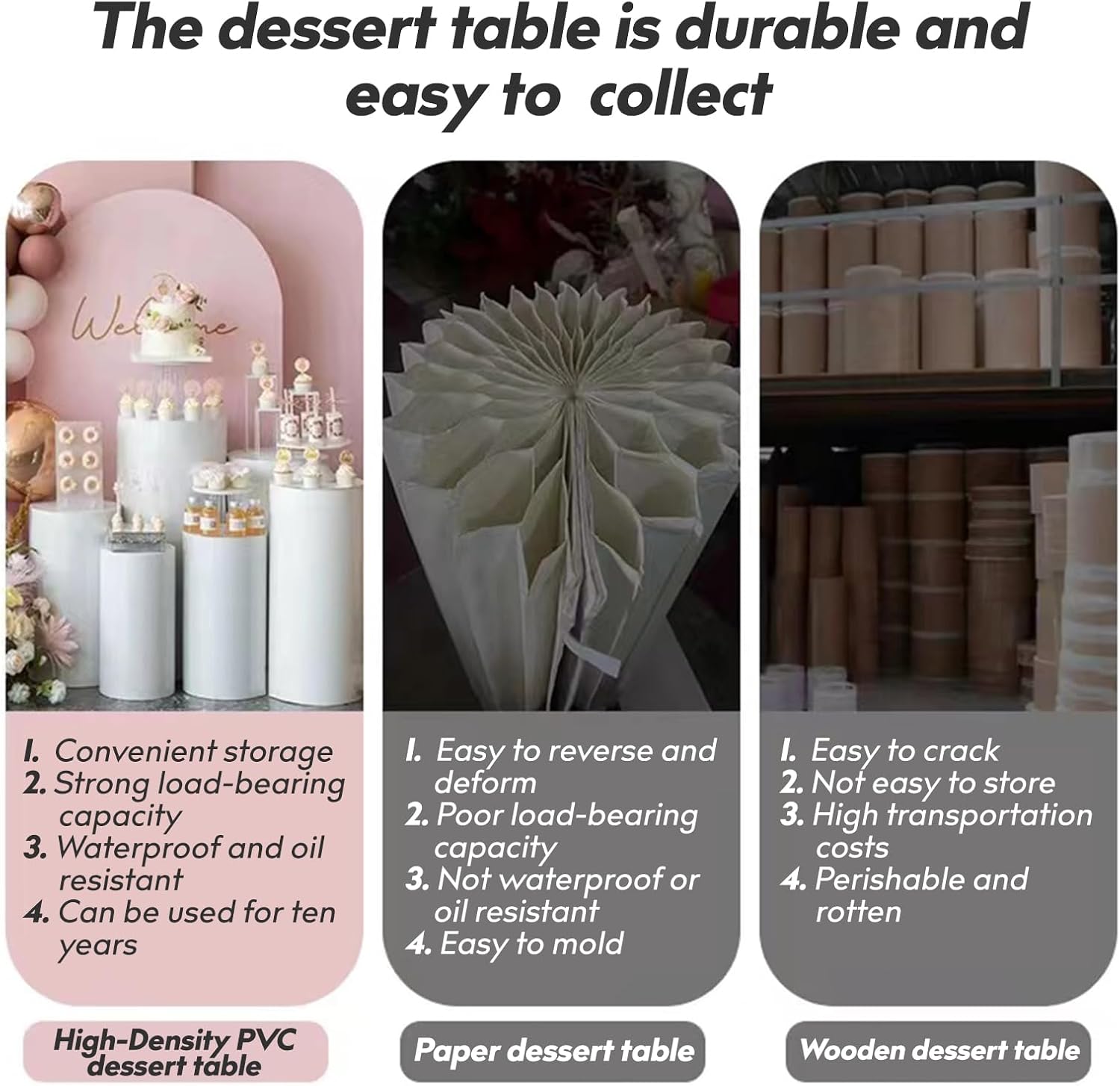• Widely Used: These pedestals for parties can be used as dessert tables, flower tables, gift tables for weddings, or cake tables or fruit tables for birthday parties, and can also be used as store window decorations.