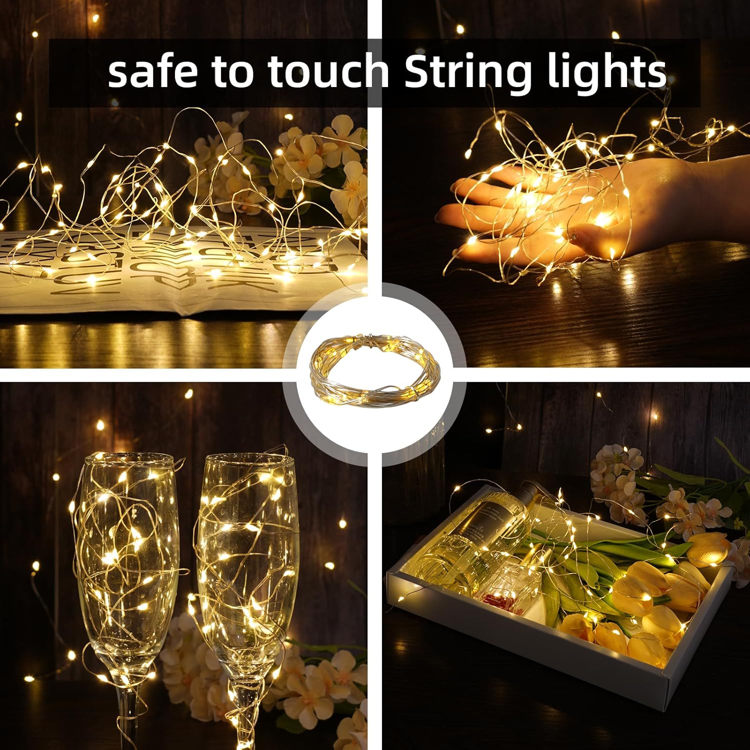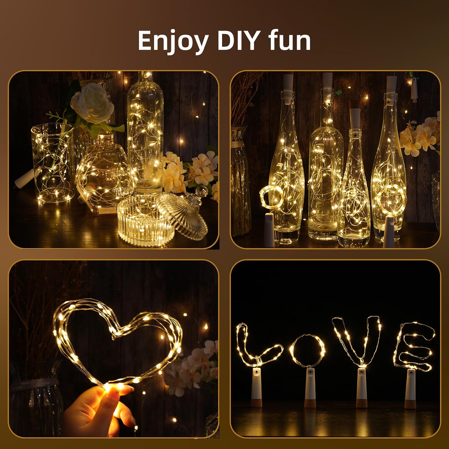 Wine Bottle Lights - 4 Pack Rechargeable Battery Operated 140mAh 20 LED Bottle Stoppers,8 Light Modes Switching,Perfect for Christmas, Weddings, Halloween, and More(Warm)