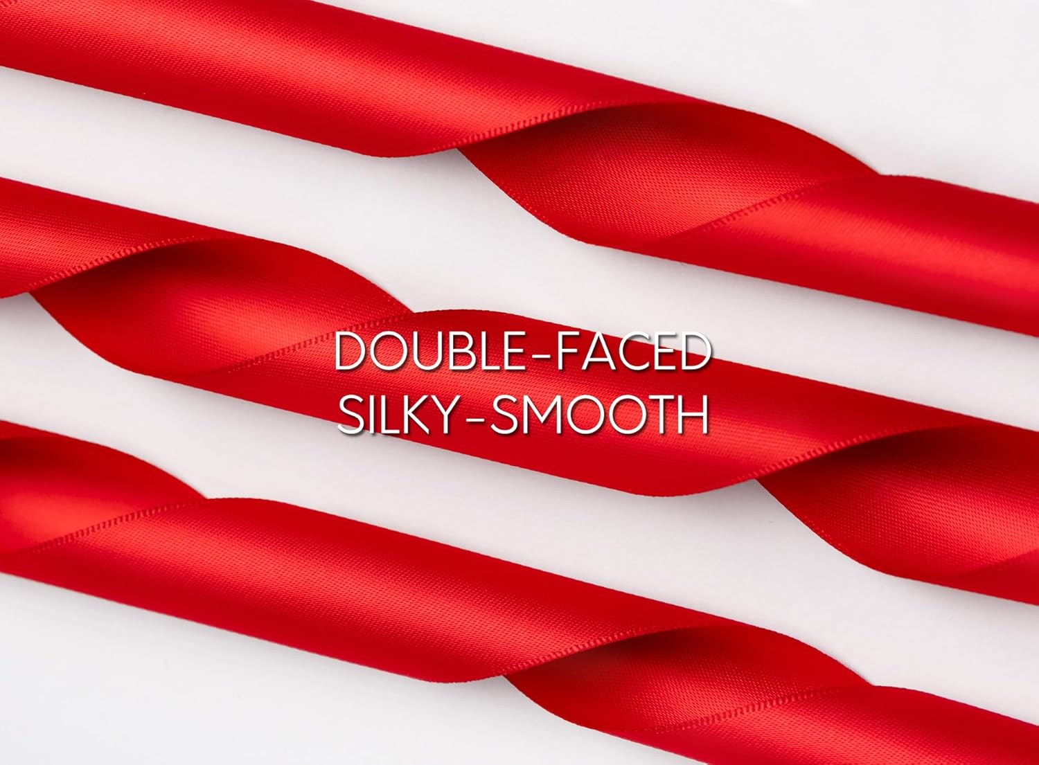 • VARIOUS USAGE: This shiny satin ribbon is a good choice for decorating gifts and home during regular times. It is suitable for flower bouquets, wreaths, gift wrapping, craft projects, headbands, hair ties, Christmas tree decorations, craft projects