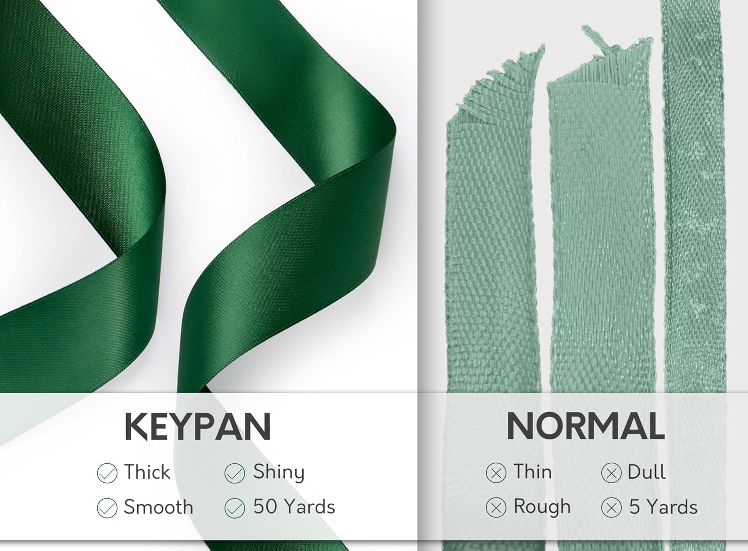 Forest Green Satin Ribbon 1-1/2 Inch x 50 Yards Double-Faced Ribbons for Christmas Gift Wrapping Crafts Flower Bouquet Wedding Paper Bows Invitations