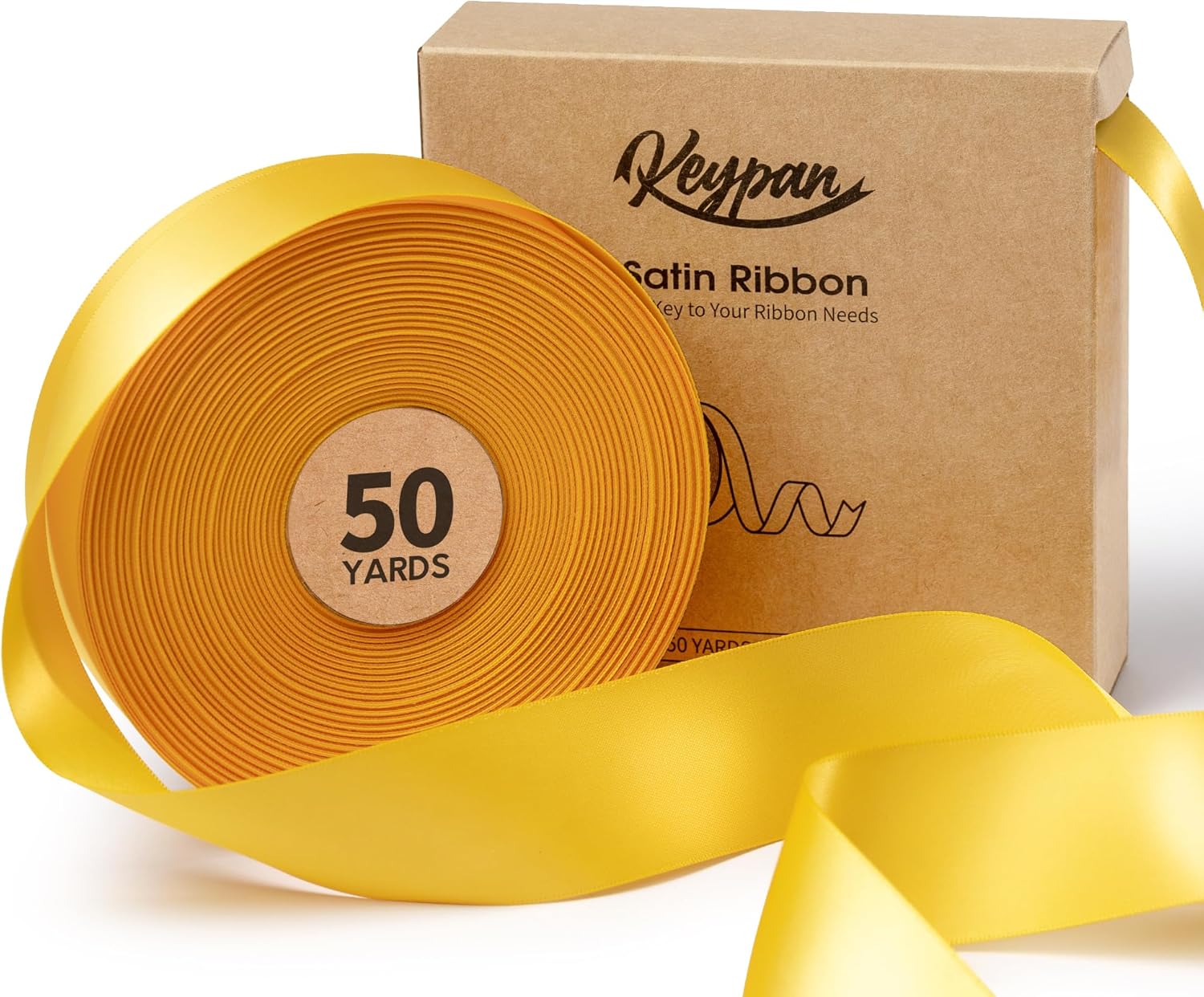 Yellow Ribbon 1-1/2 Inch x 50 Yards Double-Faced Satin Ribbons for Crafts Gift Wrapping Flower Bouquet Wedding Paper Holiday Decorating