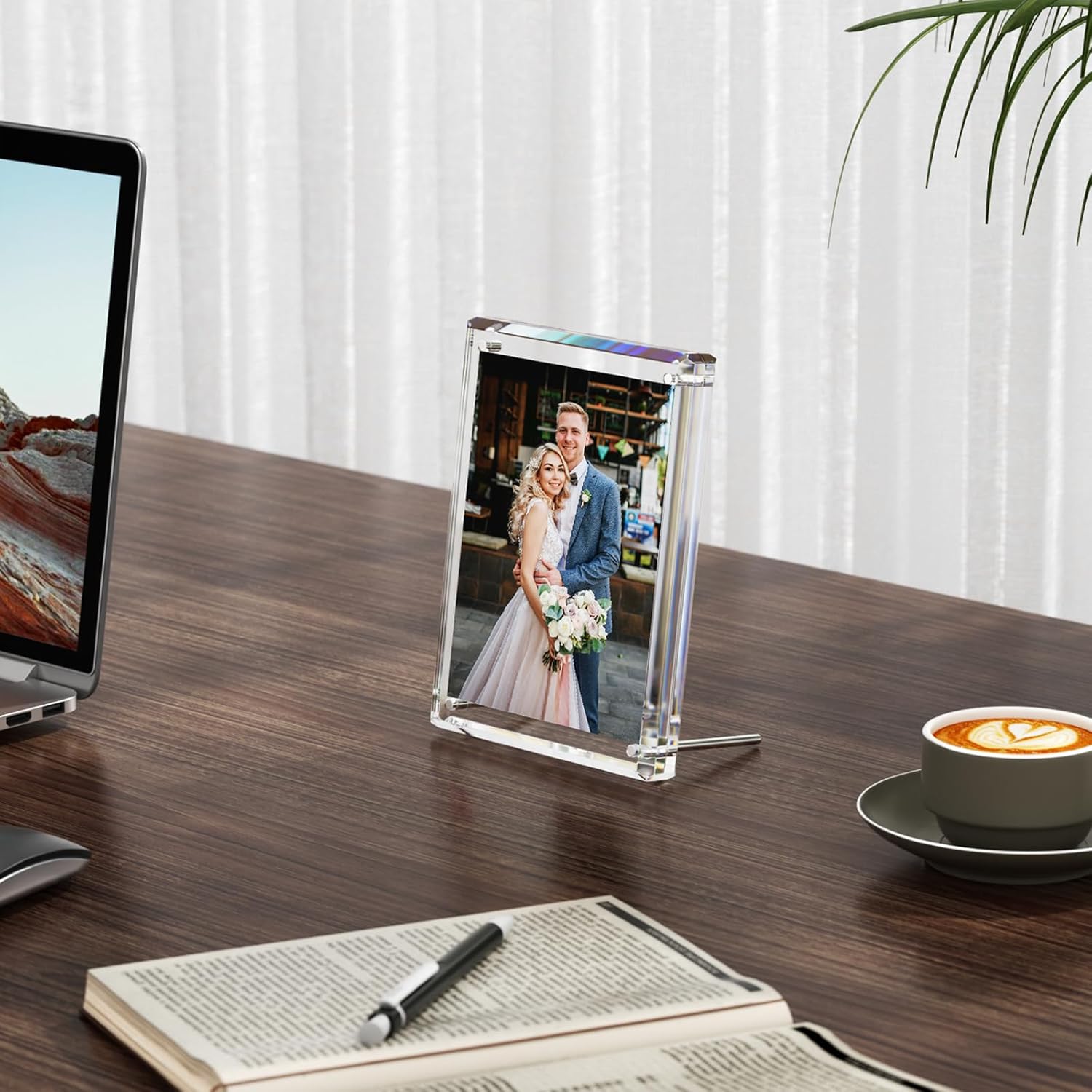 • Stable Magnetic Stands: The small picture frame features two adjustable magnetic stands on the back, allowing for tool-free removal. The acrylic frame's back is equipped with four discreetly placed holes that house the magnets, enabling easy switching between horizontal and vertical orientations.