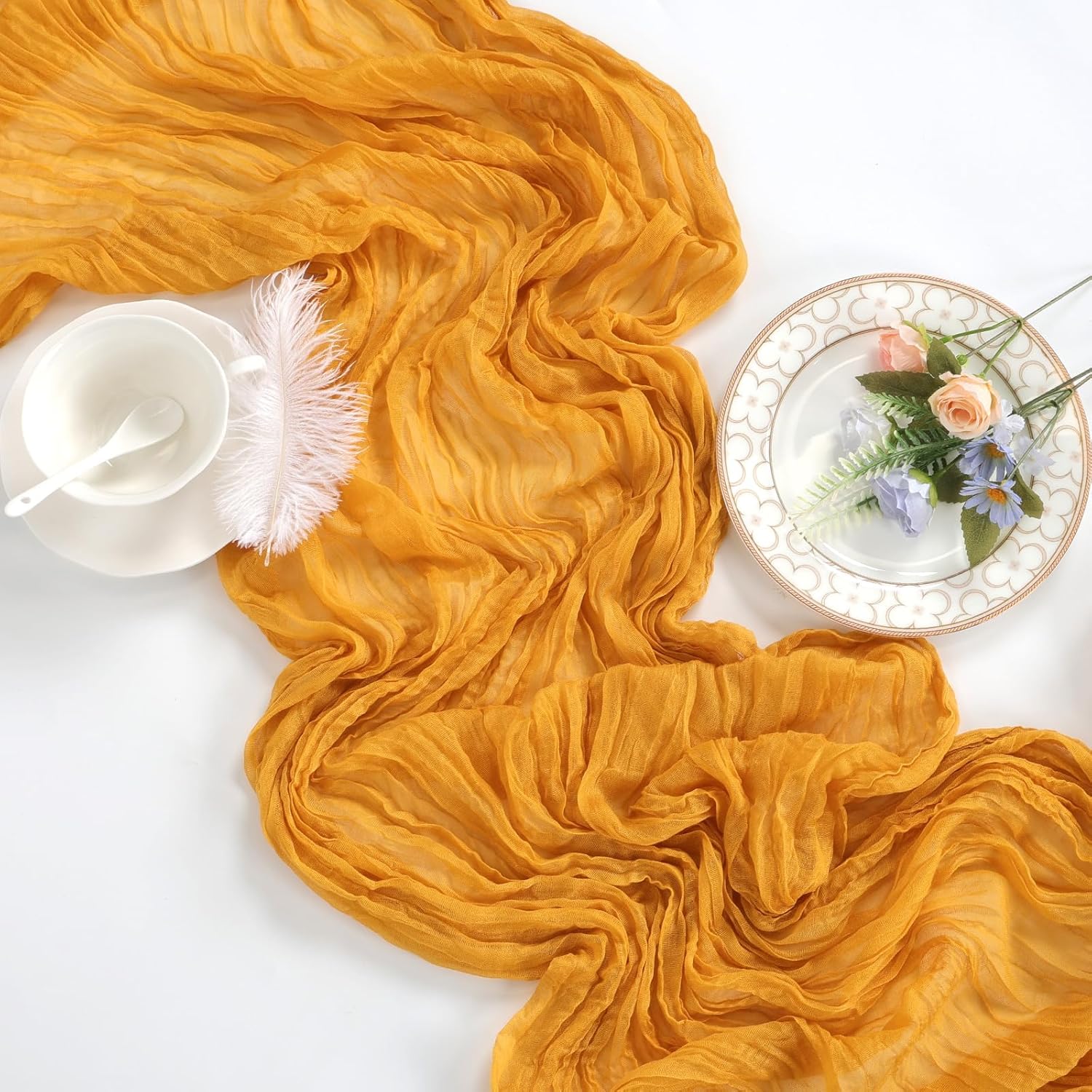 • 【Gorgeous Looking】Our Cheese Cloth Table Runner Are Meticulously Crafted From High Polyester Fabric, With Fine And Dense Texture. Not Only Do They Feel Skin-Friendly, Smooth And Soft When Touched, But Also Present An Elegant Appearance Visually, Our Gauze Table Runner Is Truly An Excellent Decoration For Your Table.