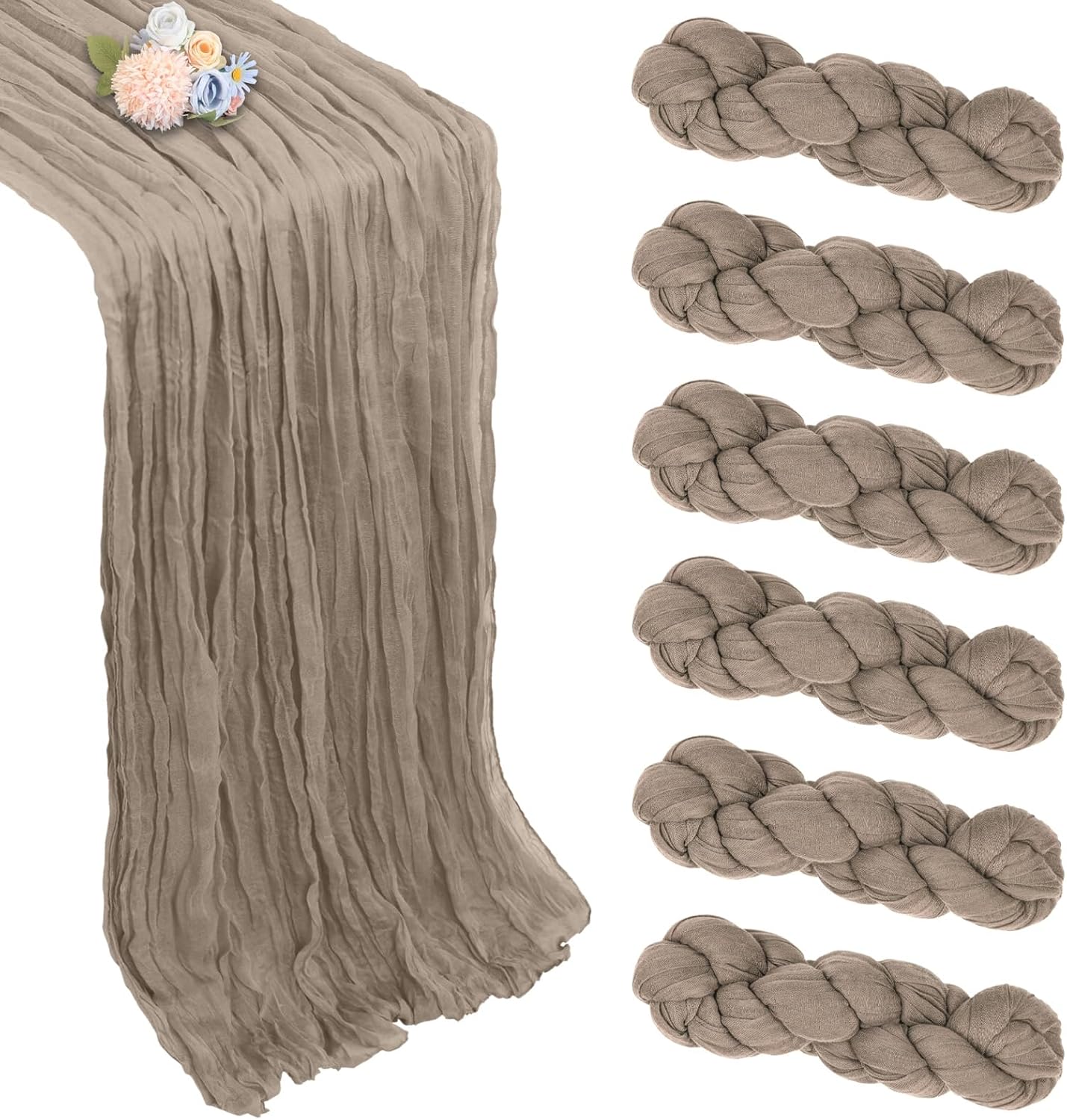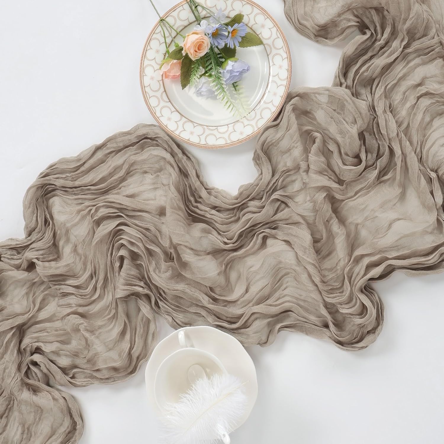 • 【Gorgeous Looking】Our Cheese Cloth Table Runner Are Meticulously Crafted From High Polyester Fabric, With Fine And Dense Texture. Not Only Do They Feel Skin-Friendly, Smooth And Soft When Touched, But Also Present An Elegant Appearance Visually, Our Gauze Table Runner Is Truly An Excellent Decoration For Your Table.