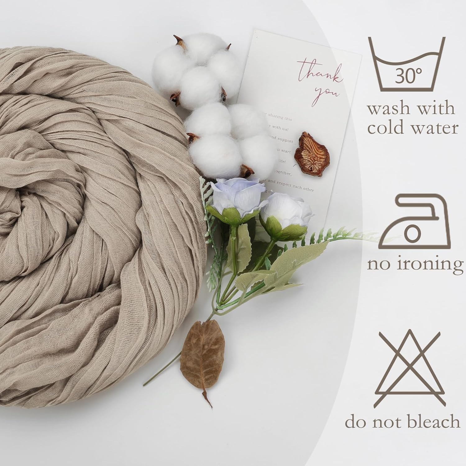• 【Care Instructions】For The Vintage Nude Cheese Cloth Table Runner, It Is Recommended That You Put Them In A Laundry Bag For Machine Washing Or Hand Wash With Cold Water. To Preserve The Wrinkled Texture Of The Gauze Table Runners, Please Do Not Iron Or Bleach Table Runners. Also, Avoid Direct Exposure To The Sun To Prevent Fading, So That They Can Be Used For A Long Time.