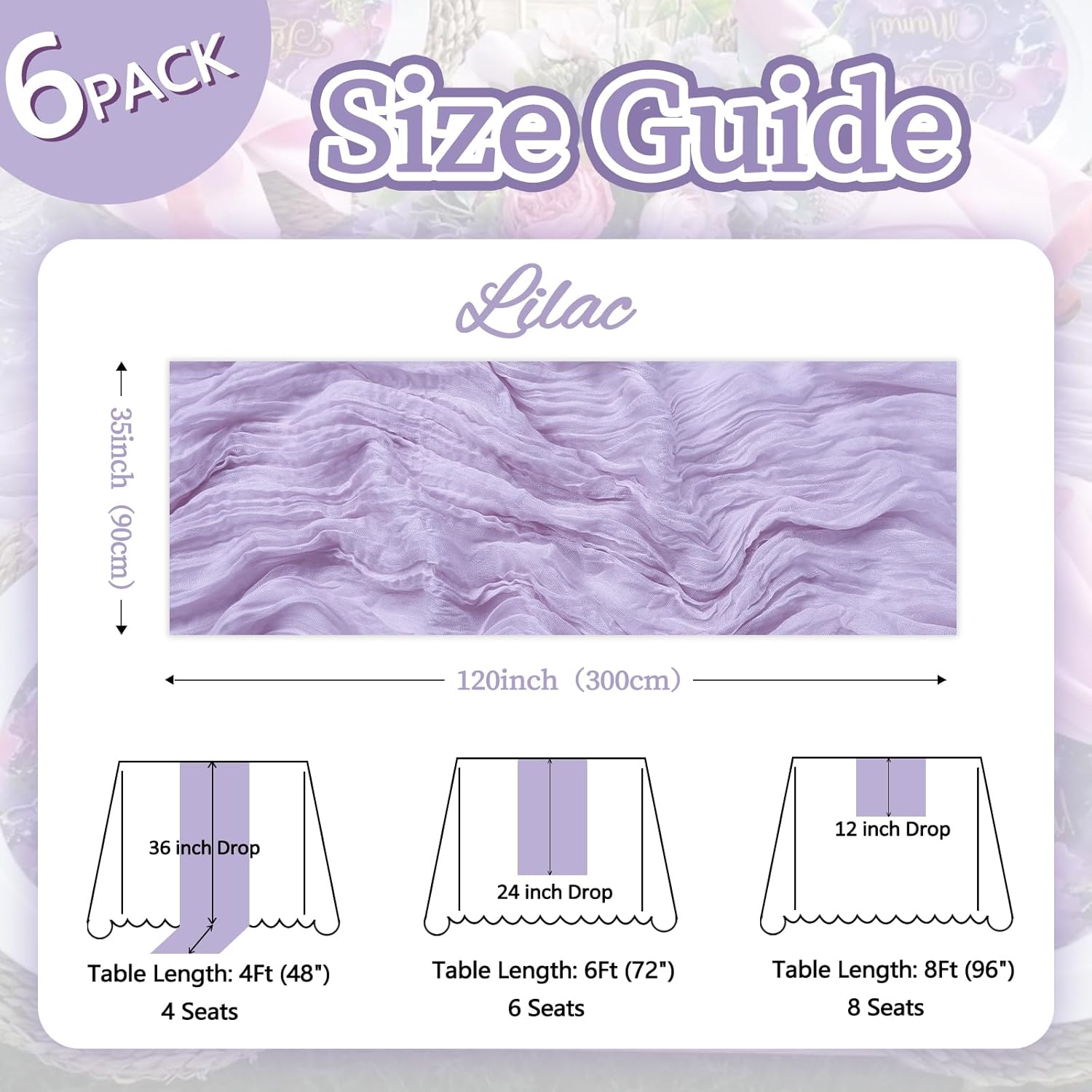 • 【Package Included】You Will Be Delighted To Receive 6 Packs Of Lilac Purple Table Runner. The Lilac Purple Cheesecloth Table Runner Quantity Is Abundant, Fully Meeting Your Daily Use And Various Event Needs. The Size Of The Table Runners Is 35 x 120 Inch, Which Can Perfectly Fit Tables Or Chairs In Various Event Scenarios. Besides, We Have Carefully Prepared A Wide Range Of Color Options For You, Which Are Highly Suitable For Creating A Romantic And Extraordinary Atmosphere.