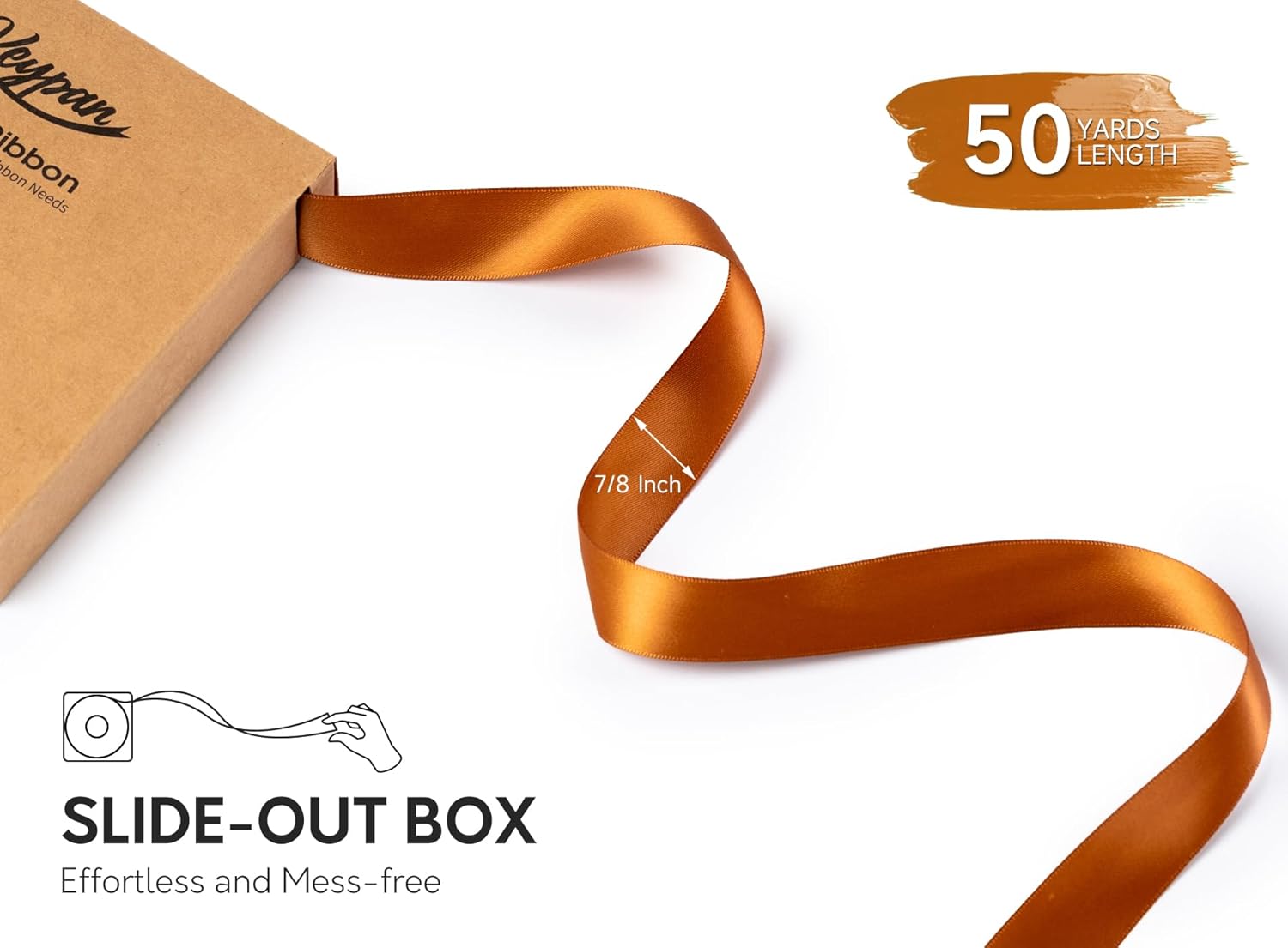 Copper Satin Ribbon 7/8 Inch x 50 Yards Double-Faced Polyester Ribbons for Bows Crafts Gift Wrapping Christmas Flower Bouquet Fall Wedding