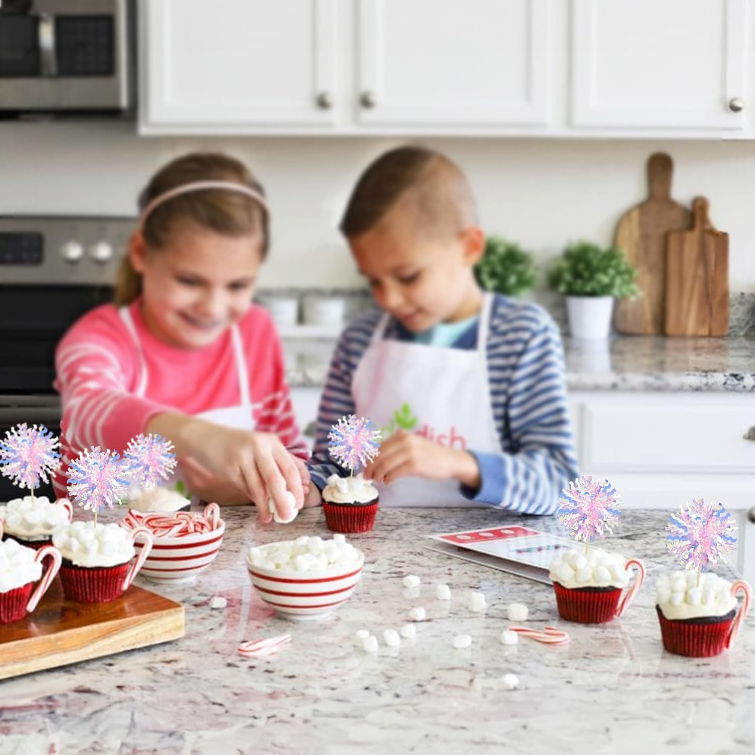 • 【NO Required】: 30Pcs Foil Firework cupcake toppers can put in the cake directly! These 30Pcs Foil Firework Cupcake toppers save your time and super easy to use. You can easily dress up your birthday theme cakes, yes! but don't stop there, put them into desserts, cookies, fruit pieces, appetizers, muffins and so much more!