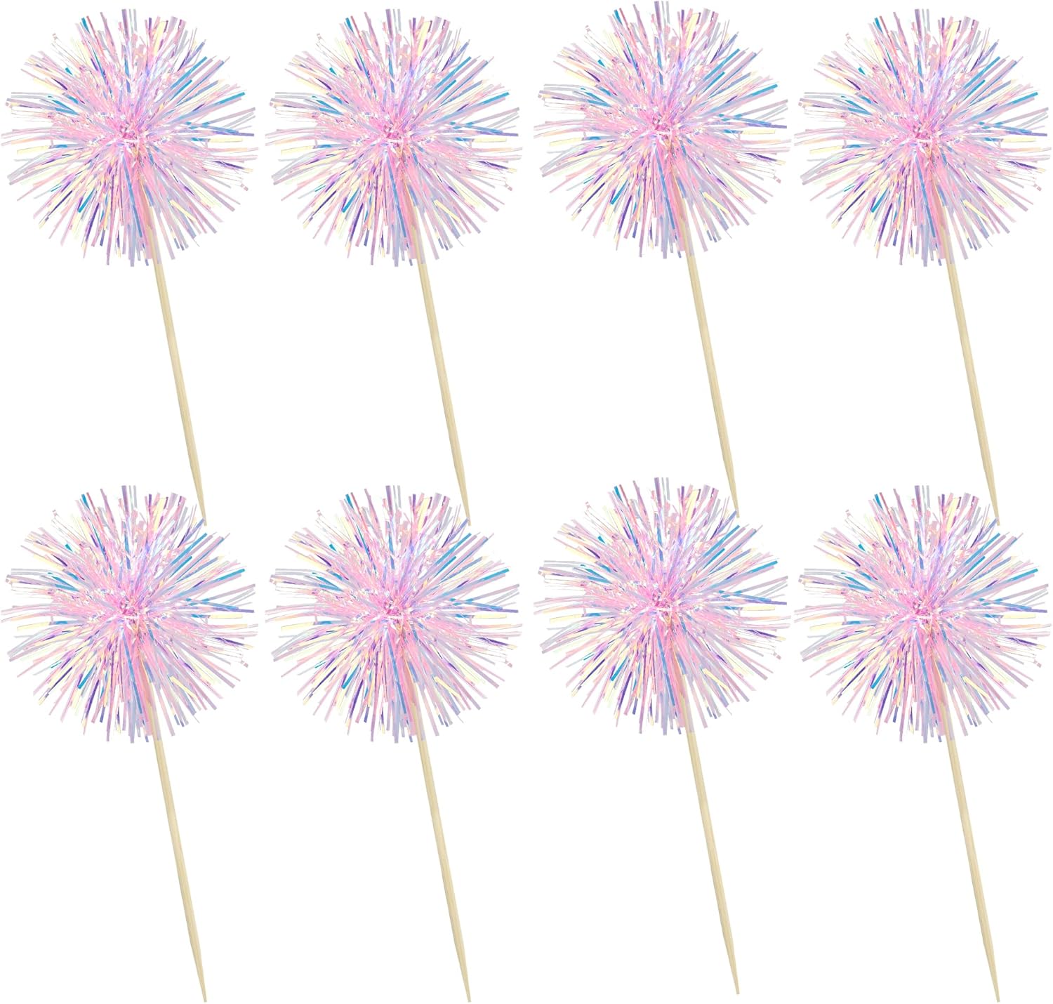Ephlyn 30Pcs Foil Firework Cupcake Toppers Happy Birthday Cake Toppers Tinsel Flower Drink Stirrers Cocktail Food Fruit Toothpicks for Valentine's Day Party Decorations Pink