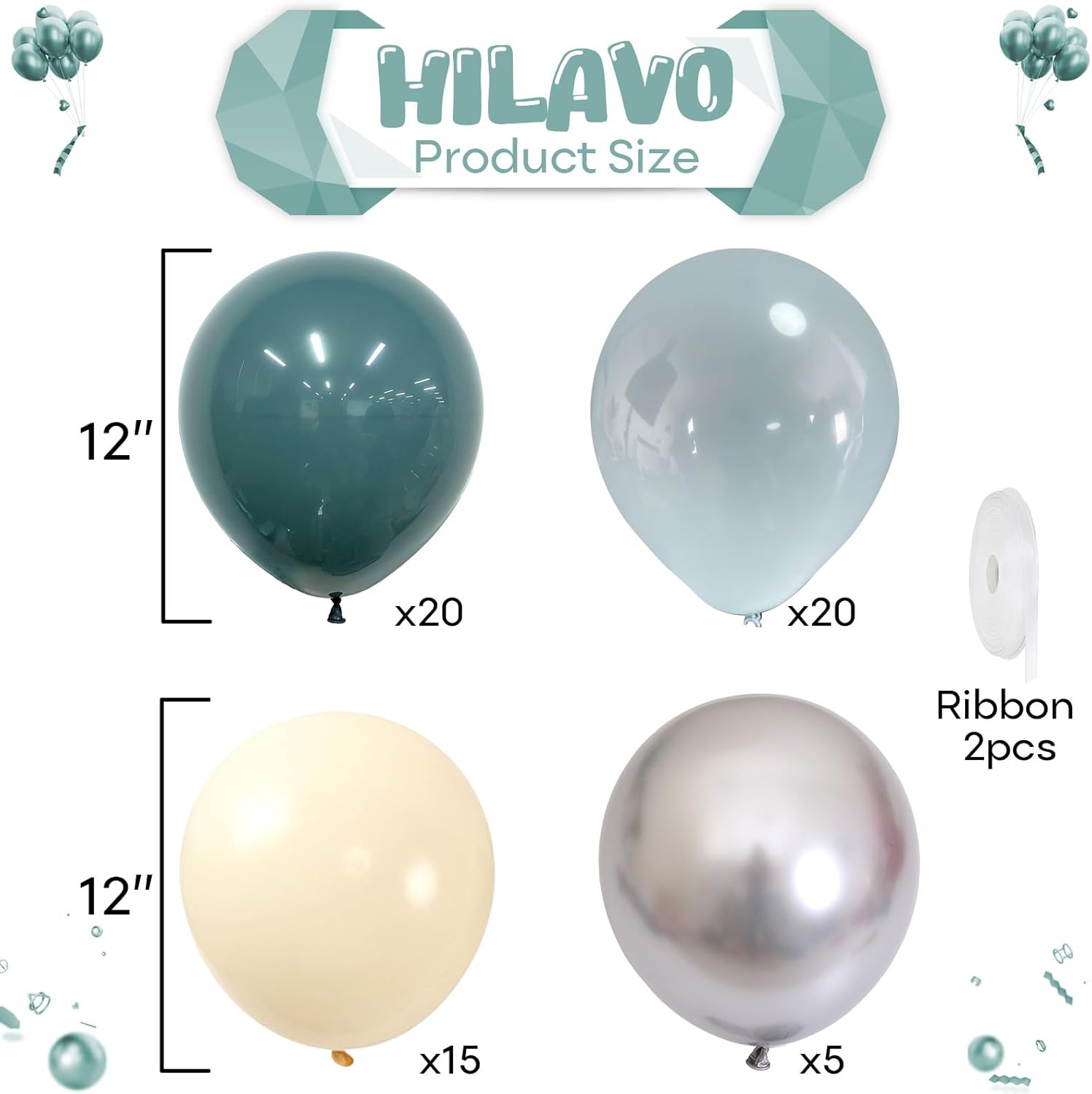 • πŸ’™ Dusty Blue and Ivory White Balloons Set: This is a beautiful bright balloon, which contains balloons of different colors. Include 12 inch dusty blue balloon(20pcs), retro fog blue balloon(20pcs), ivory white balloon(15pcs), metallic silver balloon(5pcs), 2 rolls of ribbons. You can use these different shades of blue balloon kits, DIY balloon combinations to create your birthday party.
