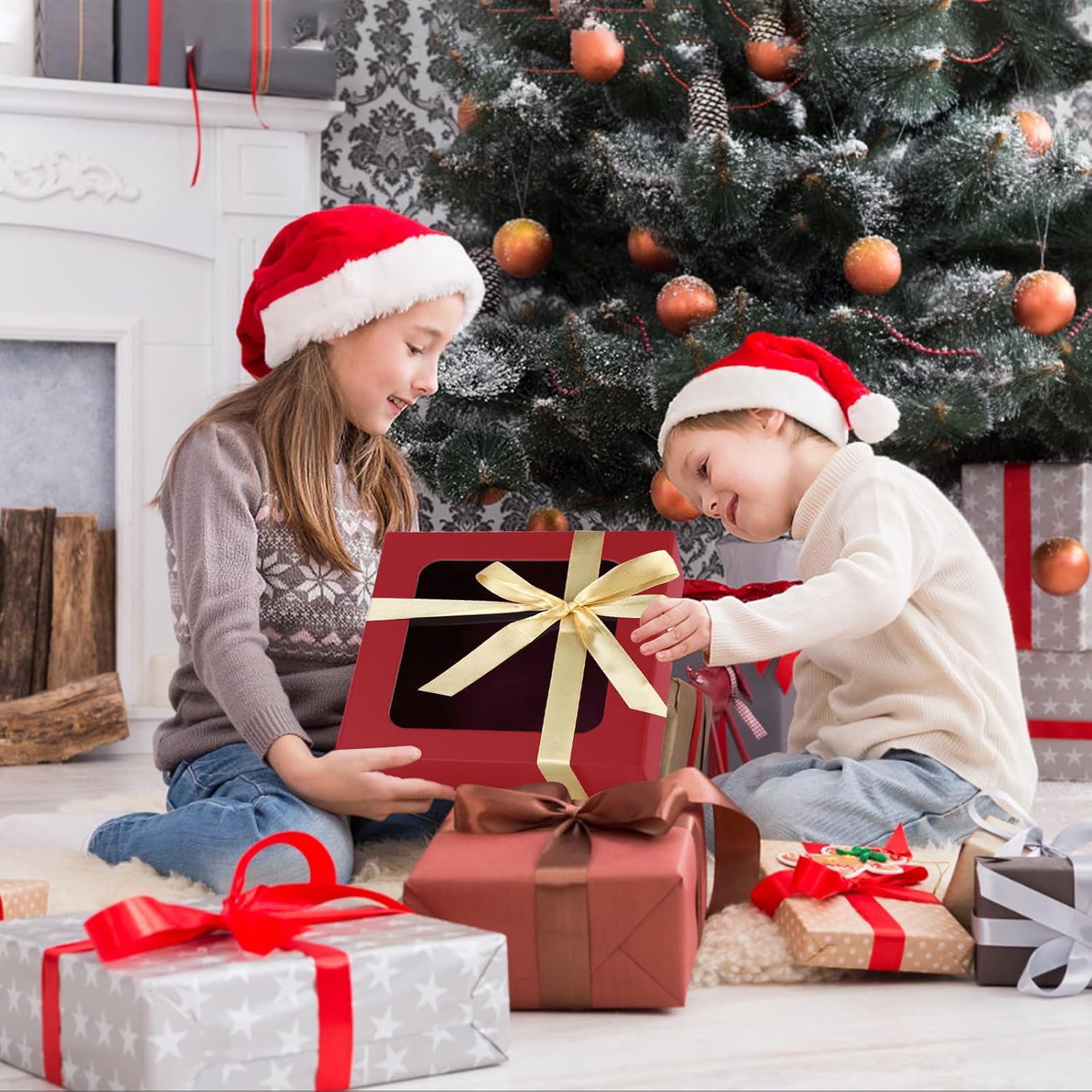• 💝WIDE APPLICATION: The gift boxes with window can hold clothes, jewelry, photos, perfumes, chocolates, toys and more. It is the ideal gift box for the perfect presentation of gifts. The beautifully wrapped box ensures that your gift is perfect. Make sure to make your gift stand out on Christmas gift, birthday party gift,Mother's Day, Thanksgiving Day gift, wedding gift or any celebration.