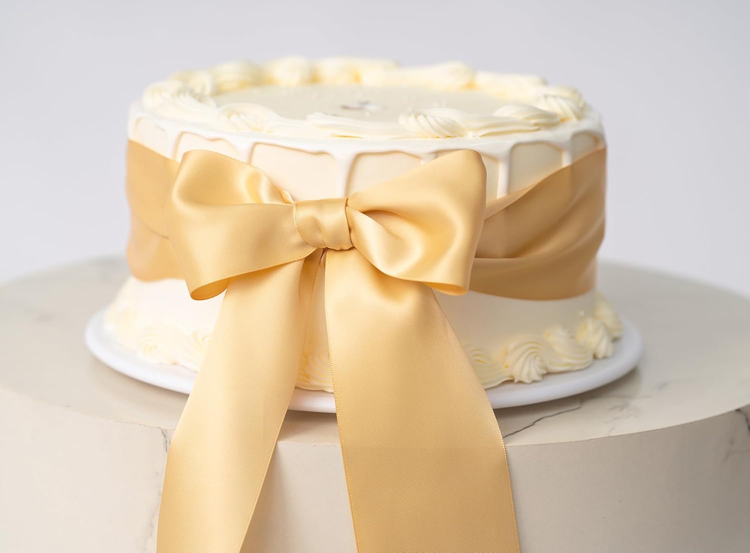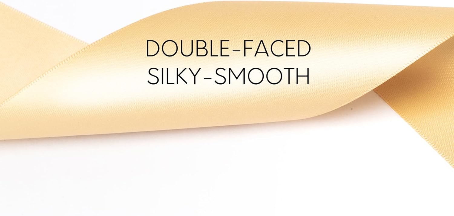Champagne Satin Ribbon 2.5 Inch Double-Faced Polyester Ribbons 25 Yards for Hair Bows Gift Wrapping Crafts Floral Bouquet Wedding Invitations