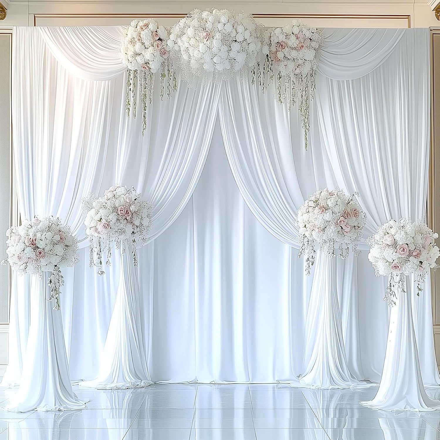 • Wrinkle Free White Backdrop Curtain: This white silky soft wedding backdrop for reception is made of wrinkle free material, known for its soft and silky texture, which will give you an extraordinary feeling of touch. The backdrop is exquisitely sewn, smooth and durable fpolyester with natural drape, add more elegance and romance to your weddings.
