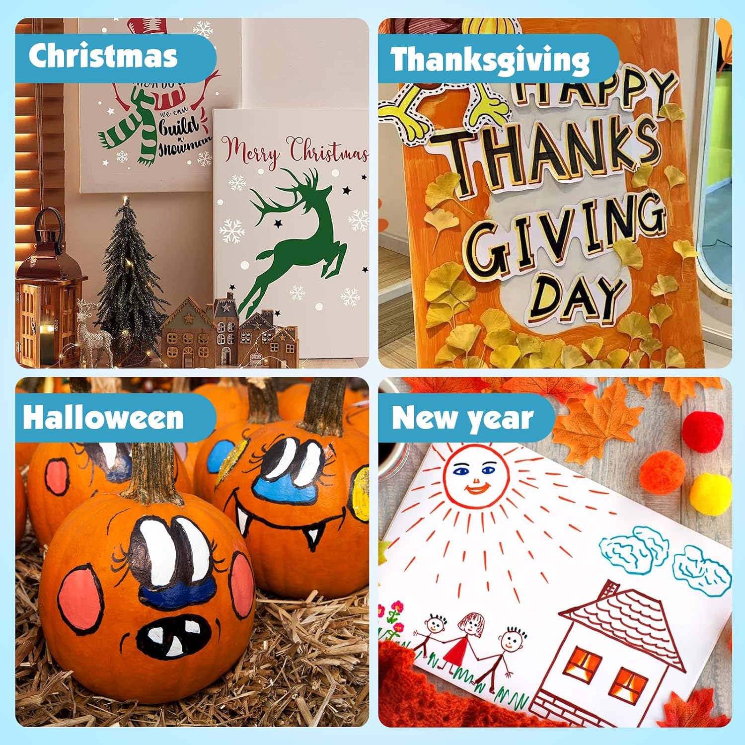 • 【DIY Gift】The bright colors make our acrylic pen works more vivid and interesting, making them perfect for DIY crafts.You can use it to design your bullet diary, plan book, scrapbook, Christmas card, birthday gift, or any DIY craft project. It is also suitable for creating various festivals, such as Halloween, Thanksgiving, Christmas, etc