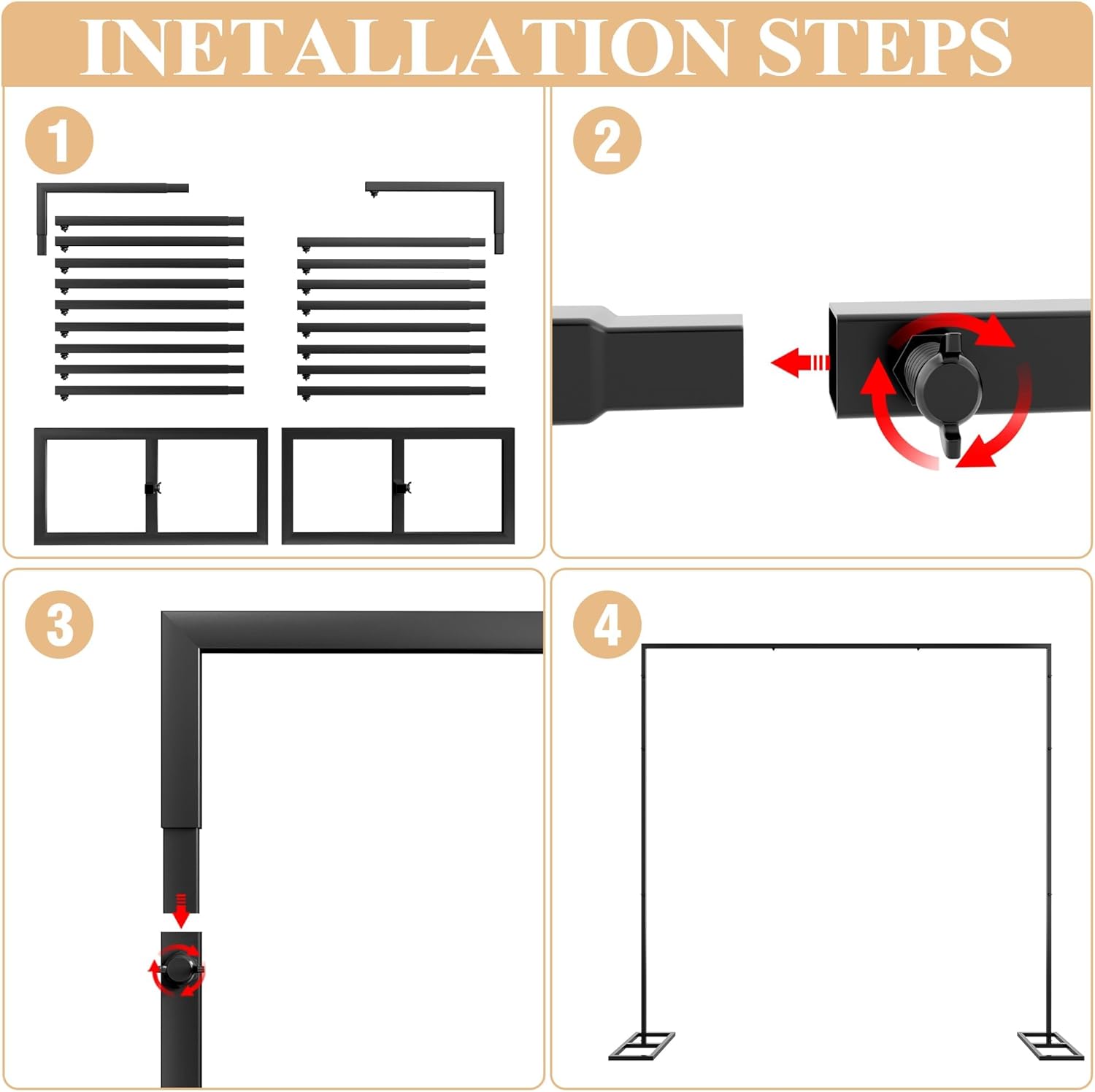 • 【Wide Uses】Heavy duty photography white backdrop stand will be a nice choise for weddings, receptions, parties, birthdays, bridal and baby showers, photography, photo booths, banner stand backdrop, business events, etc. This square arch backdrop stand would be a great scenery at your event!