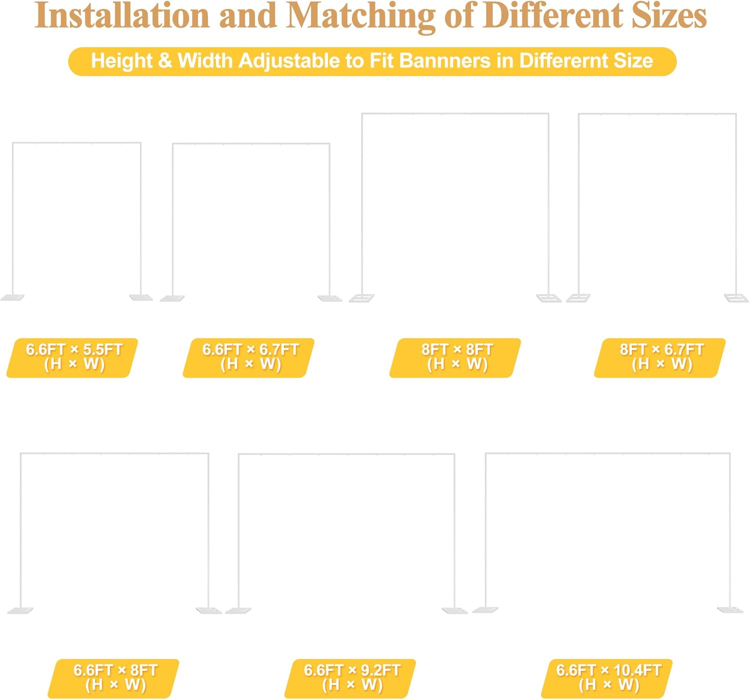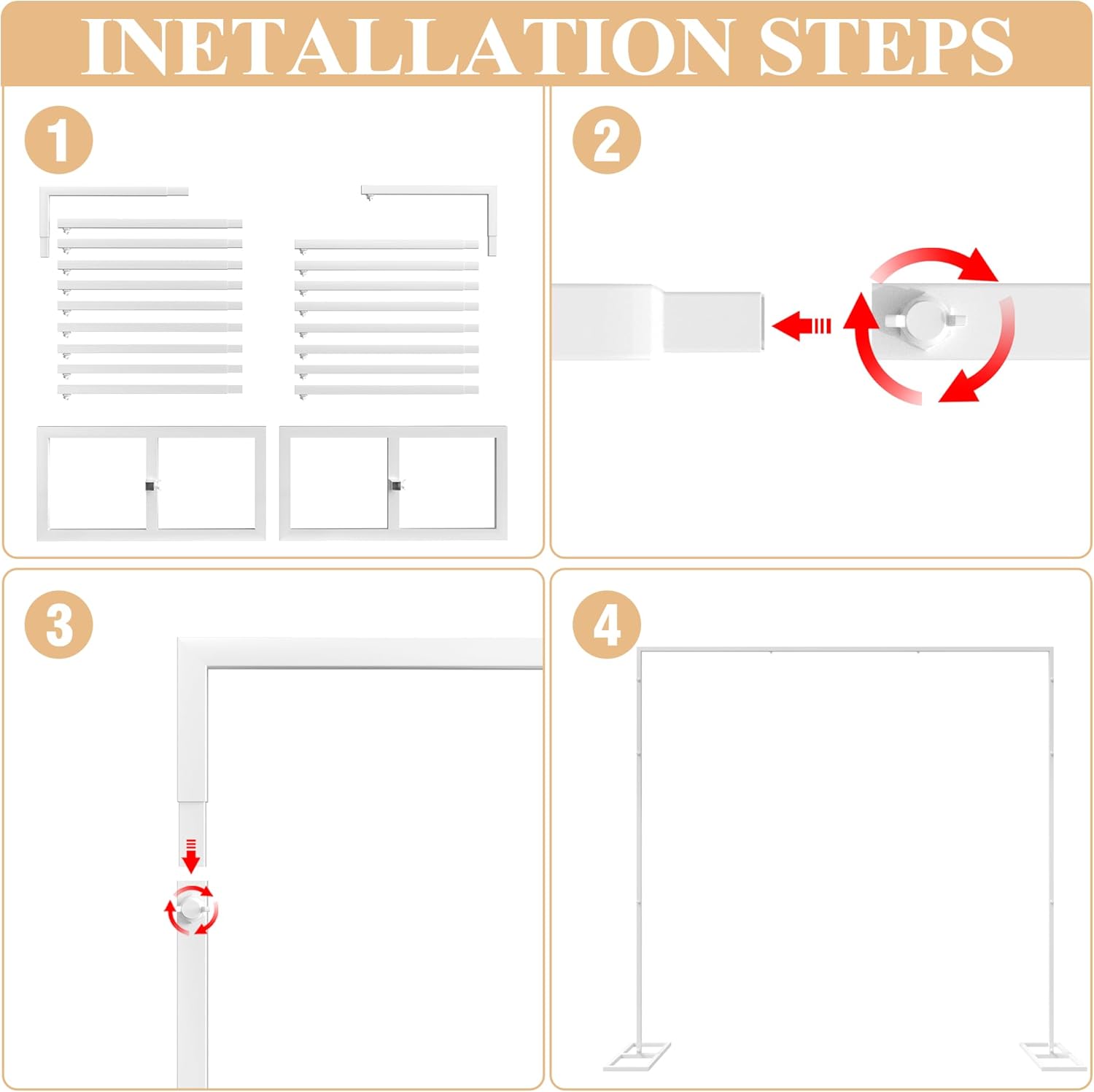 • 【Wide Uses】Heavy duty photography white backdrop stand will be a nice choise for weddings, receptions, parties, birthdays, bridal and baby showers, photography, photo booths, banner stand backdrop, business events, etc. This square arch backdrop stand would be a great scenery at your event!