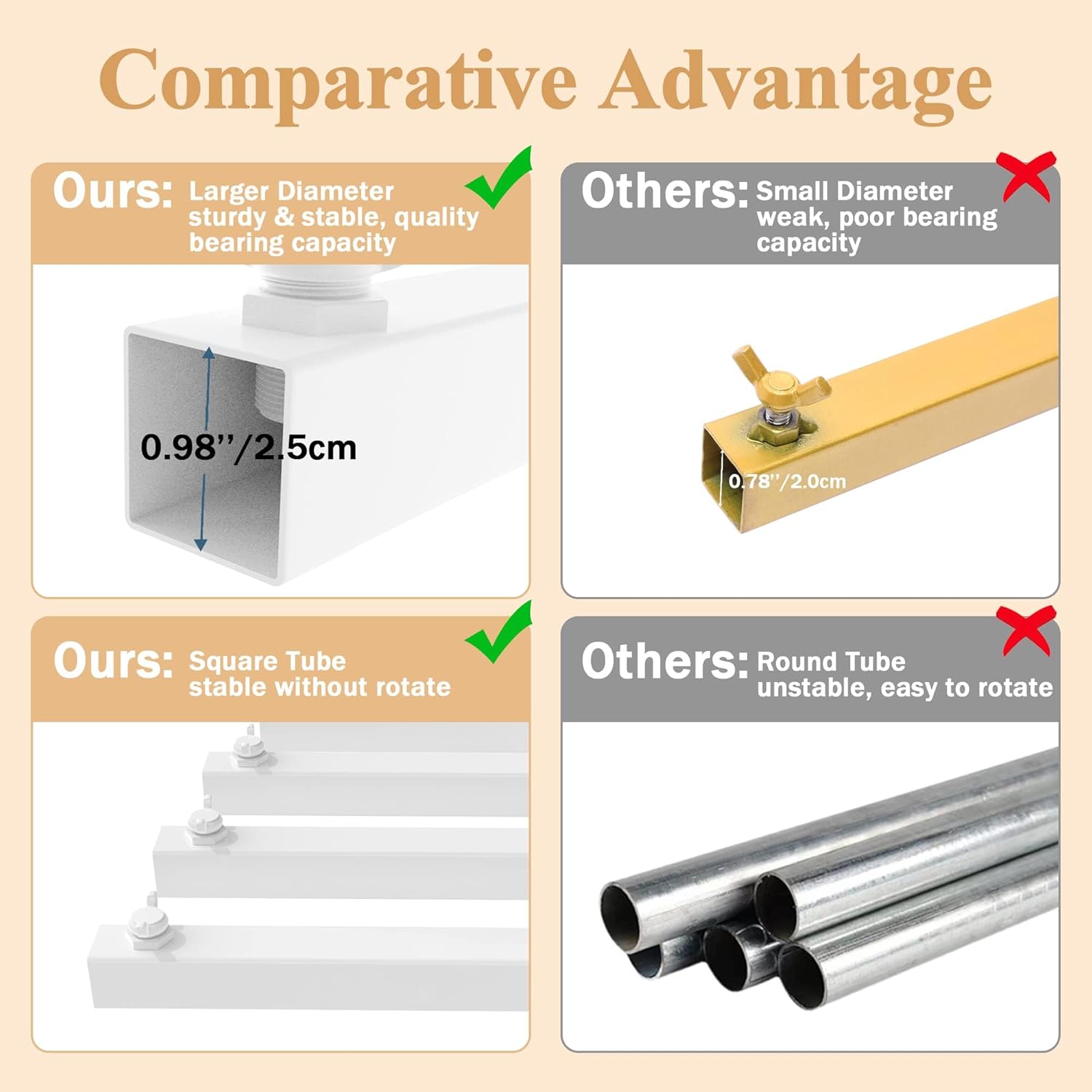 • 【Heavy Duty Backdrop Stand】8x8 ft/2.4x2.4 M square backdrop stand heavy duty with base is made of 1.0mm thick high toughness and anti-rust square steel pipe, more stable than circular tube without easily twist. Sturdy base legs provides a firm and balanced support of metal photo backdrop stand, safe and secure.