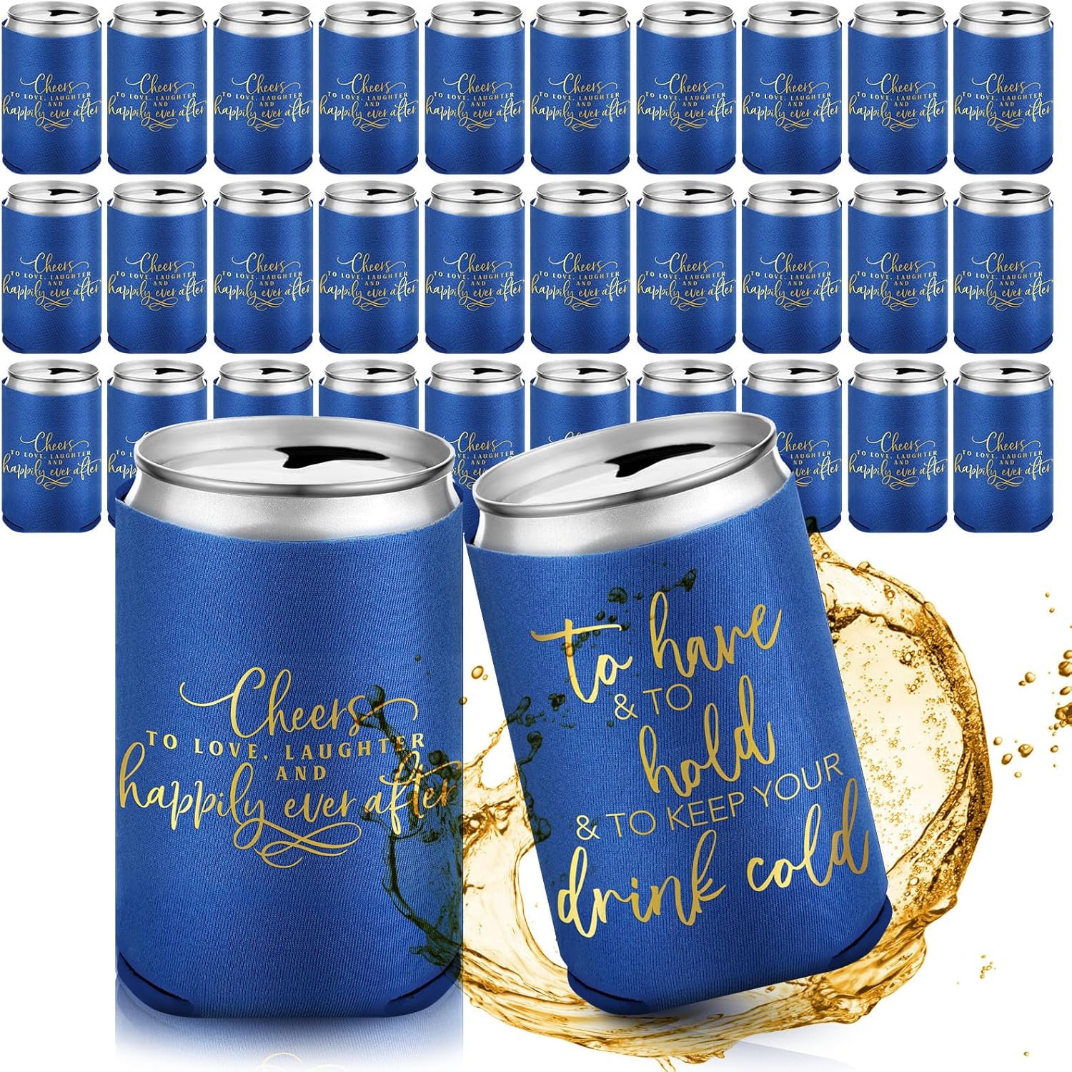 • Satisfying Party Package: our huge package containing 50 pieces of wedding can cooler decorations; Make every drink a celebration with our blue and gold can coolers; They are suited to uplift the atmosphere at weddings, bridal showers, and bachelorette parties