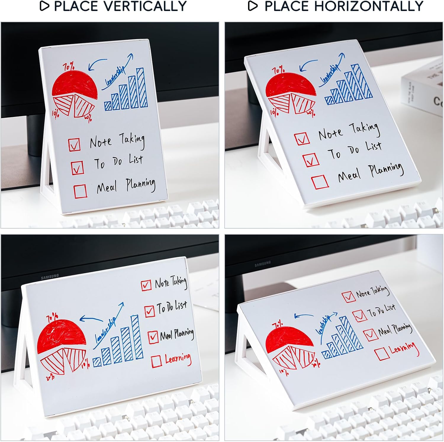 • 【Desktop White board with Dry Erase Pen】Explore your creativity with the convenience of a desktop whiteboard, complete with a complimentary dry erase pen.