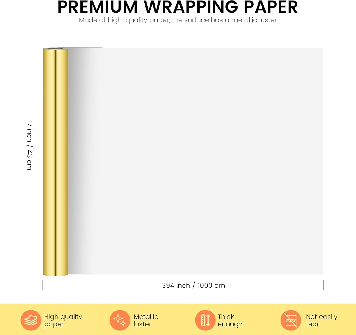 KMER LIFE Metallic Wrapping Roll (Gold) - 17 x 394 Inch, Premium Gift Wrapping for Birthday, Wedding, Christmas, Parties
